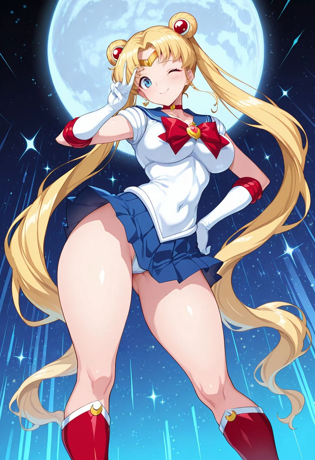 aina winchester, white hair, short hair, heterochromia, large breasts, christmas, santa costume, no bra, navel, shorts, pantyhose