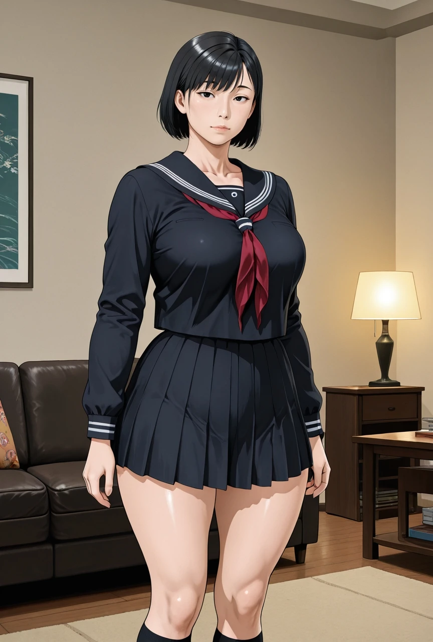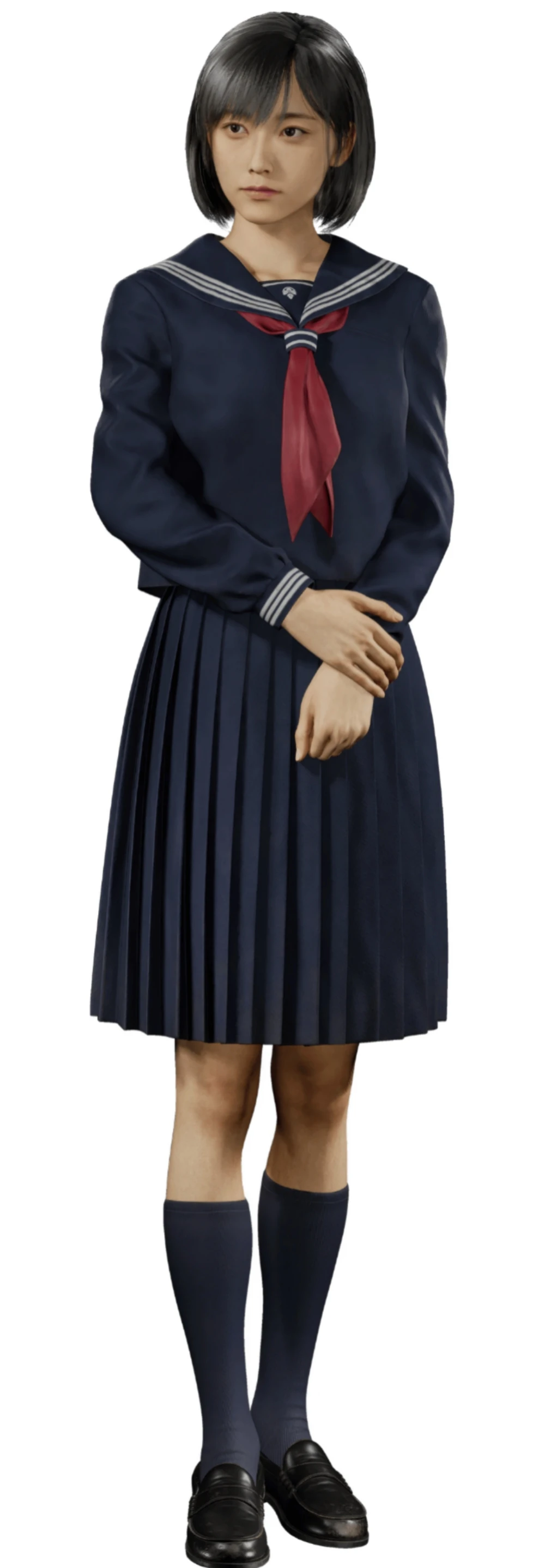 shimizu hinako, black eyes, black hair, side part, swept bangs, short hair,