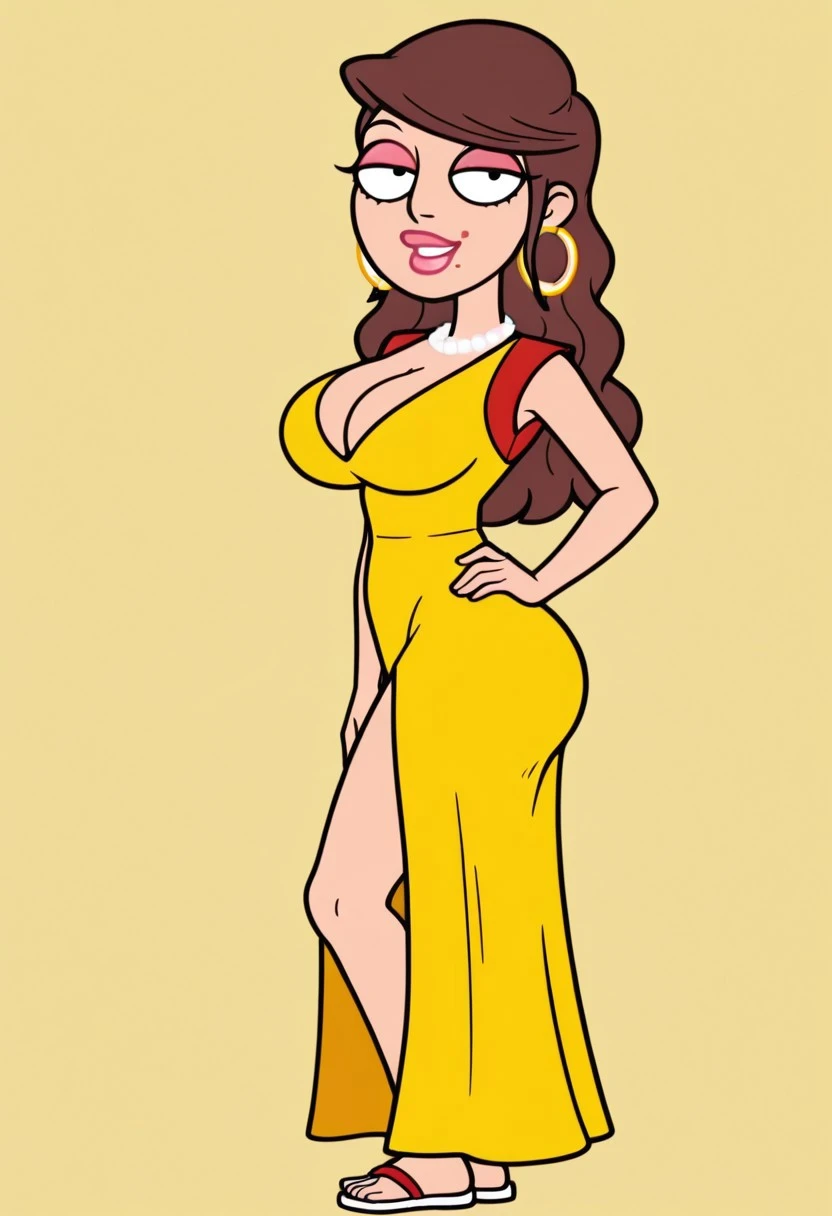cleavage, yellow dress, sandals