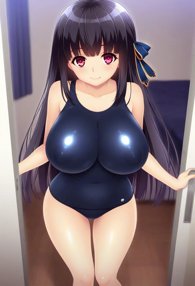 Recommend Prompt:Mio Rindou, red eyes, black hair, long hair, straight hair, hair ribbon,