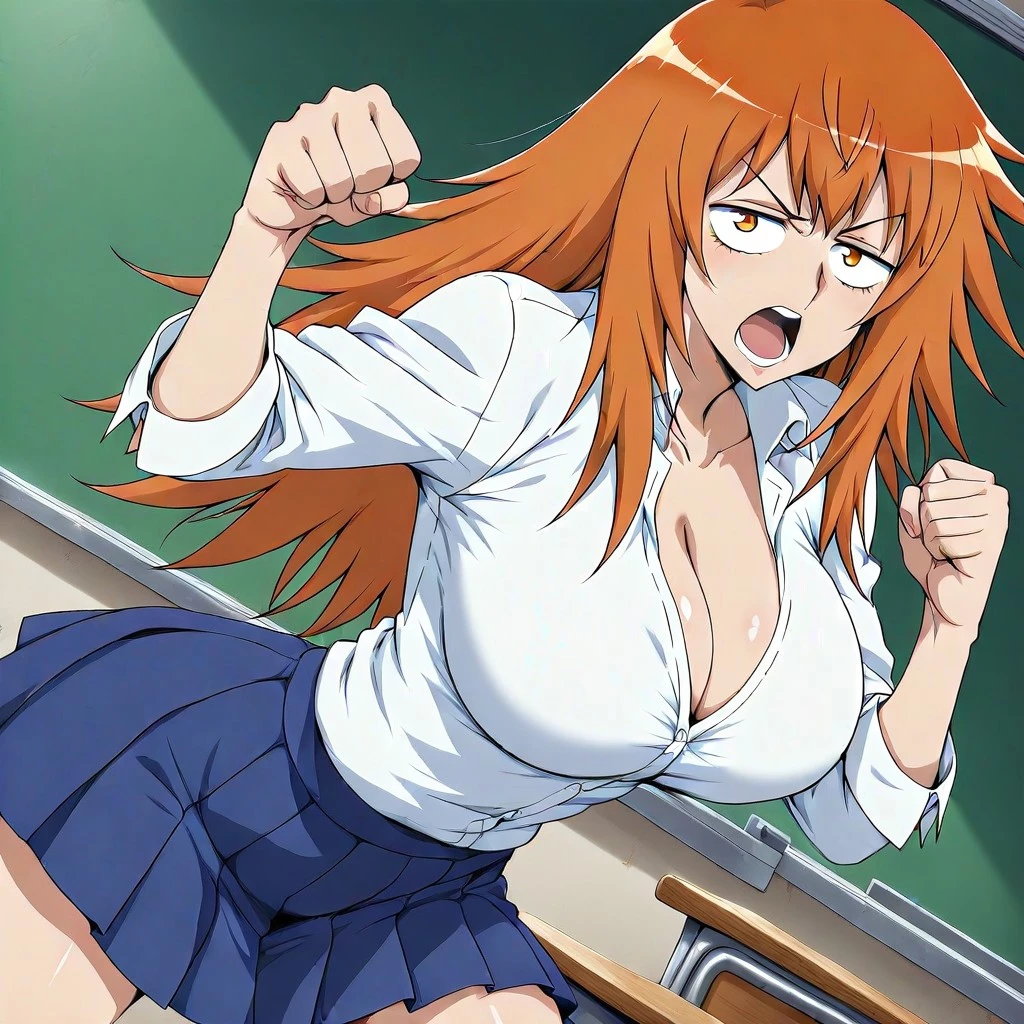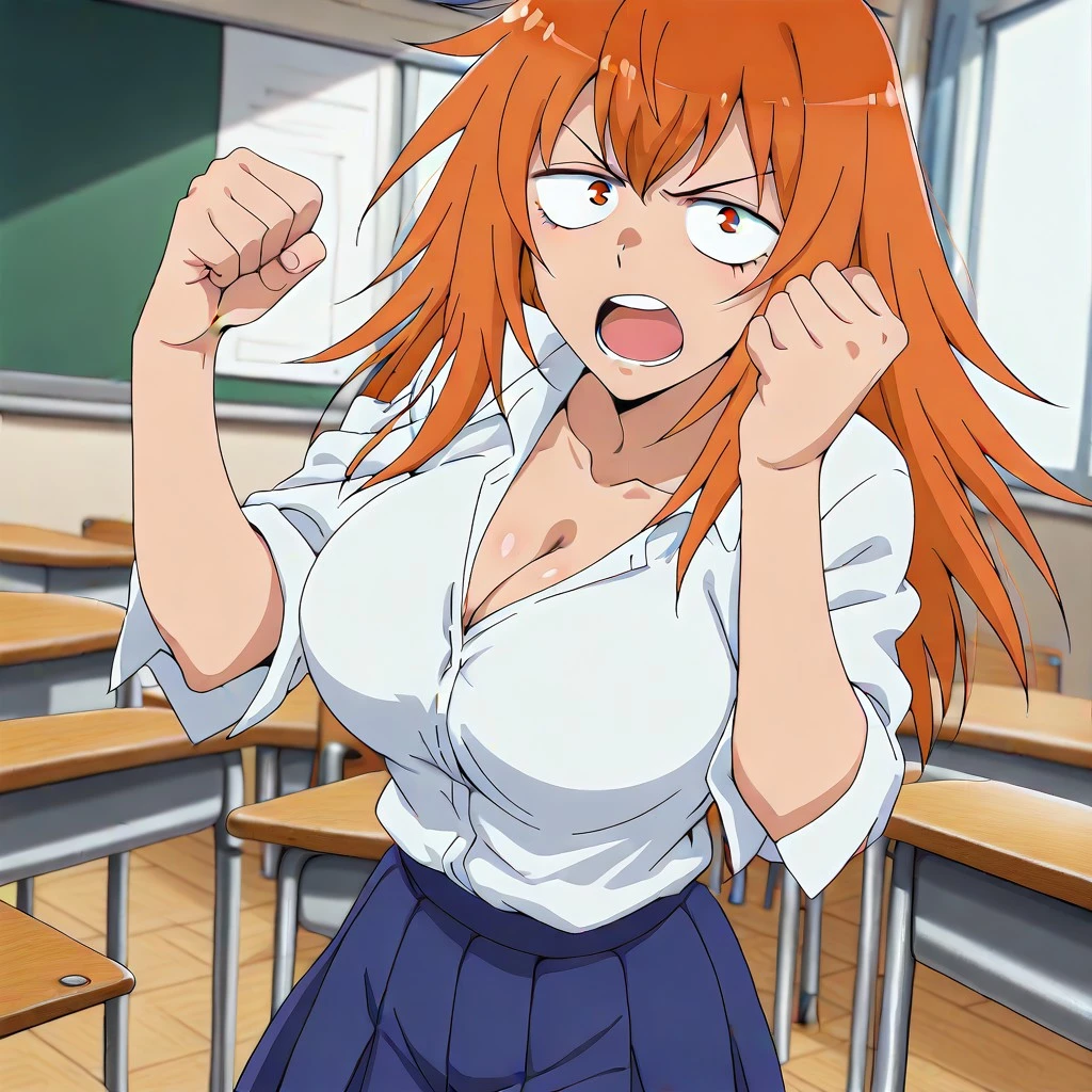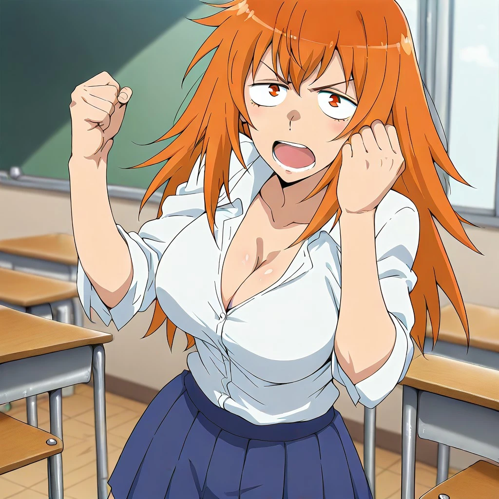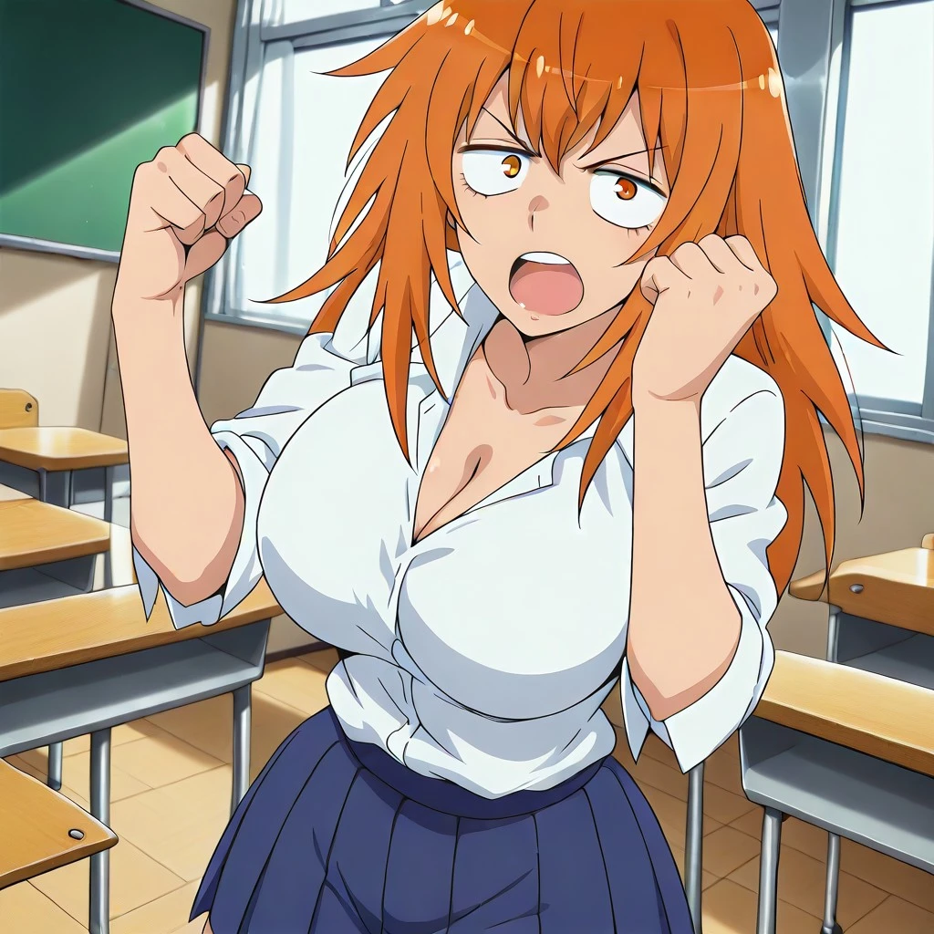 maki gamou, gamou maki, long hair, orange hair, orange eyes,, mature female, breasts, large , detail, detailed,anime screencap