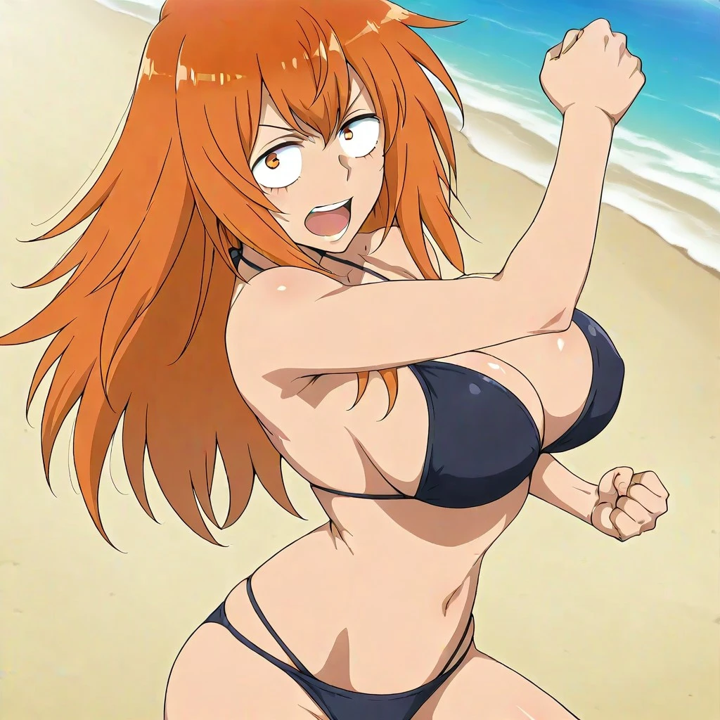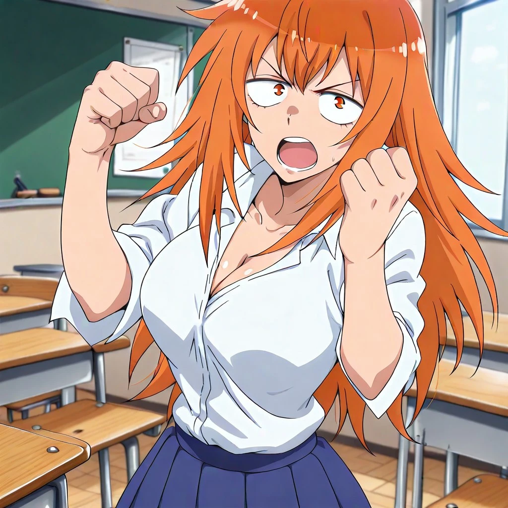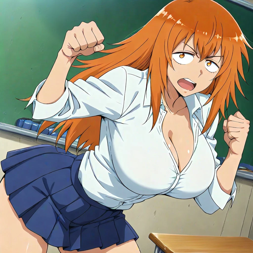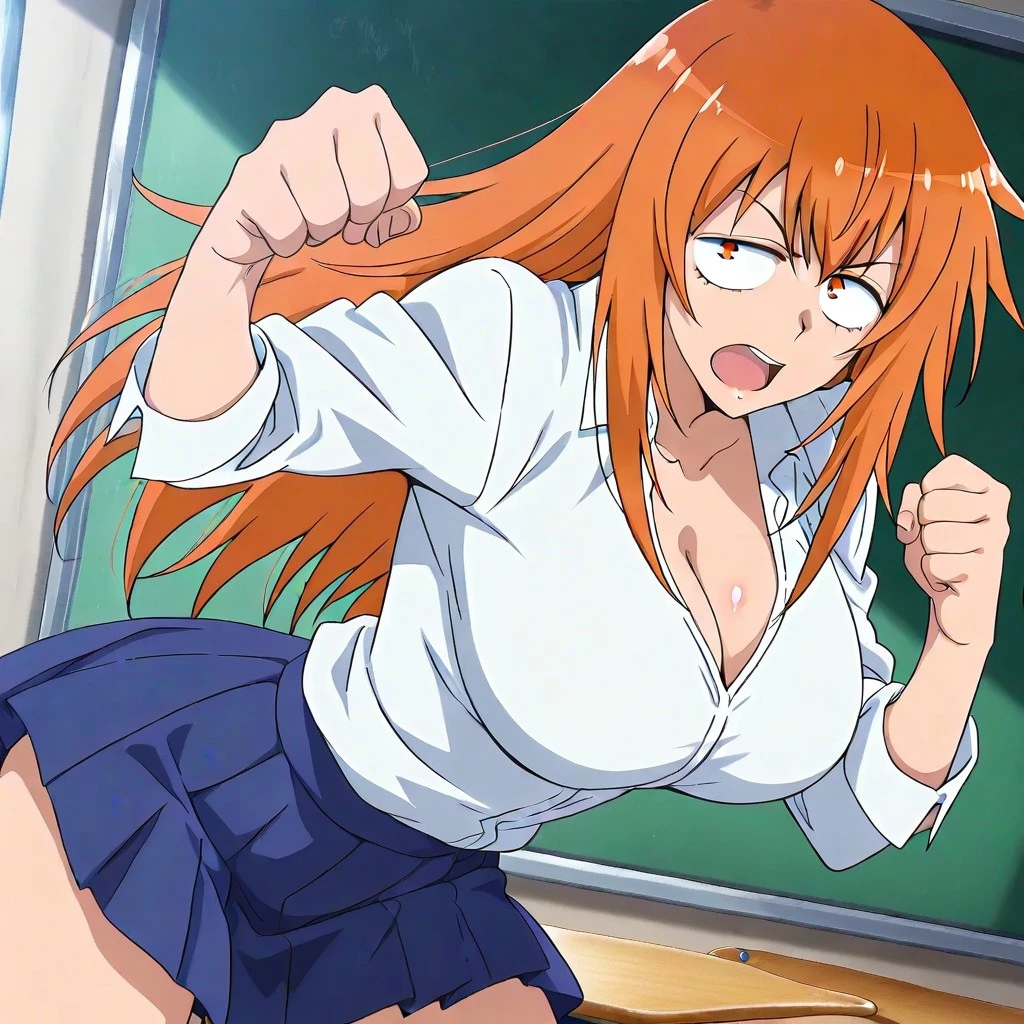 maki gamou, gamou maki, long hair, orange hair, orange eyes,, mature female, breasts, large , detail, detailed,anime screencap