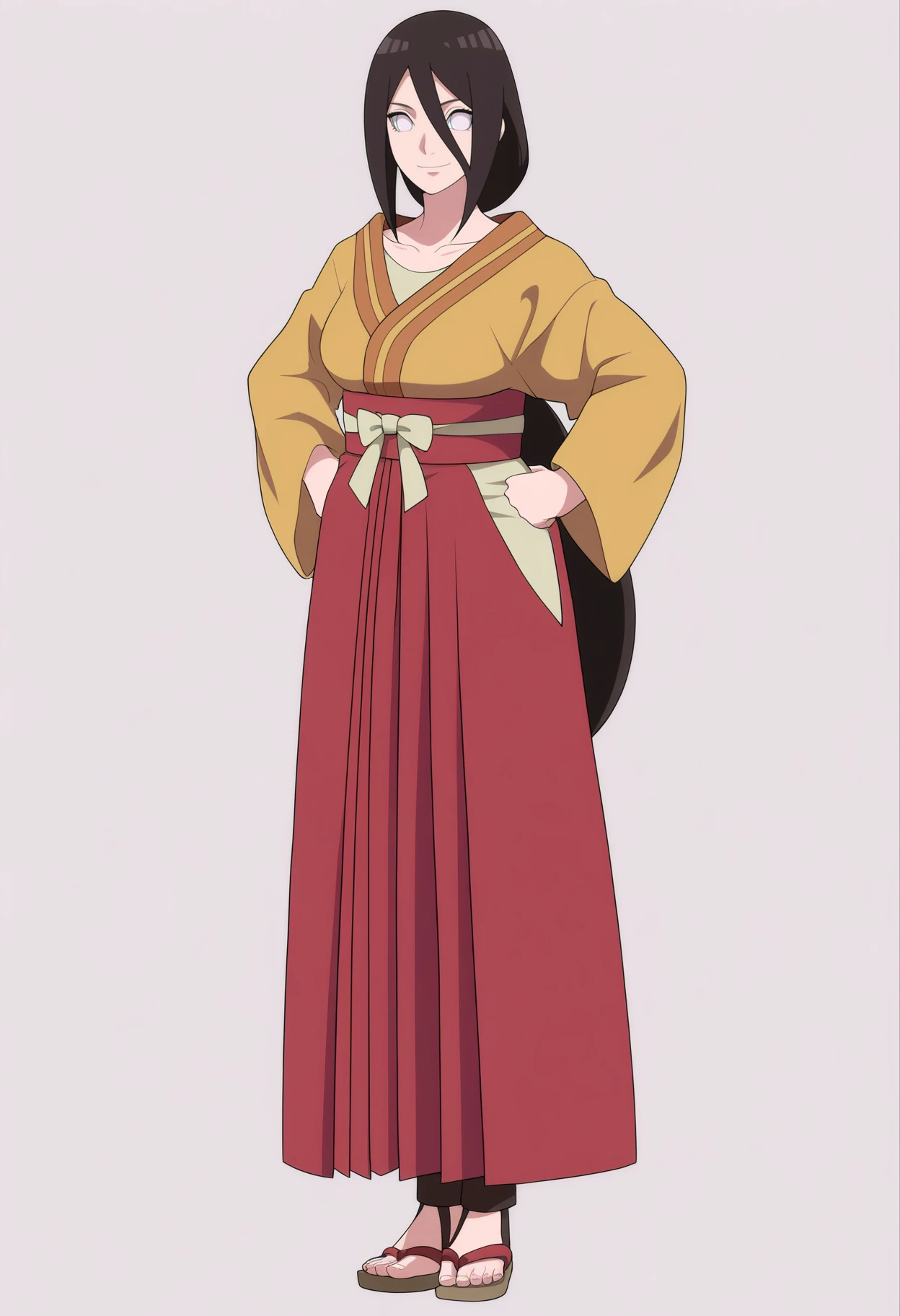 Outfit promtps : collarbone, hakama skirt, japanese clothes, kimono, long wide sleeves, sash