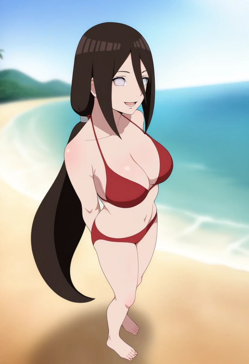 1girl, hanabihyuga, black hair, long hair, low ponytail, hair between eyes, no pupils, white eyes