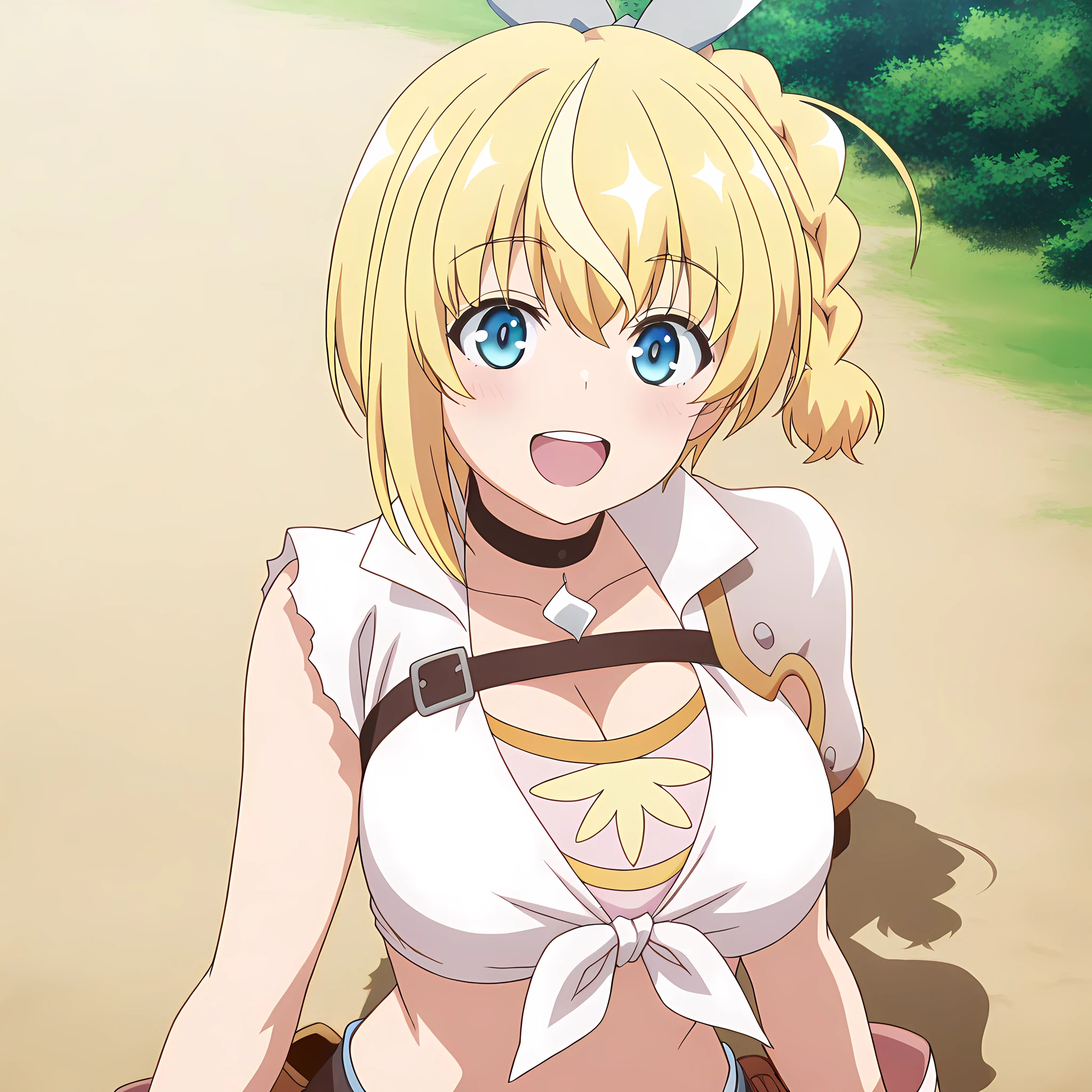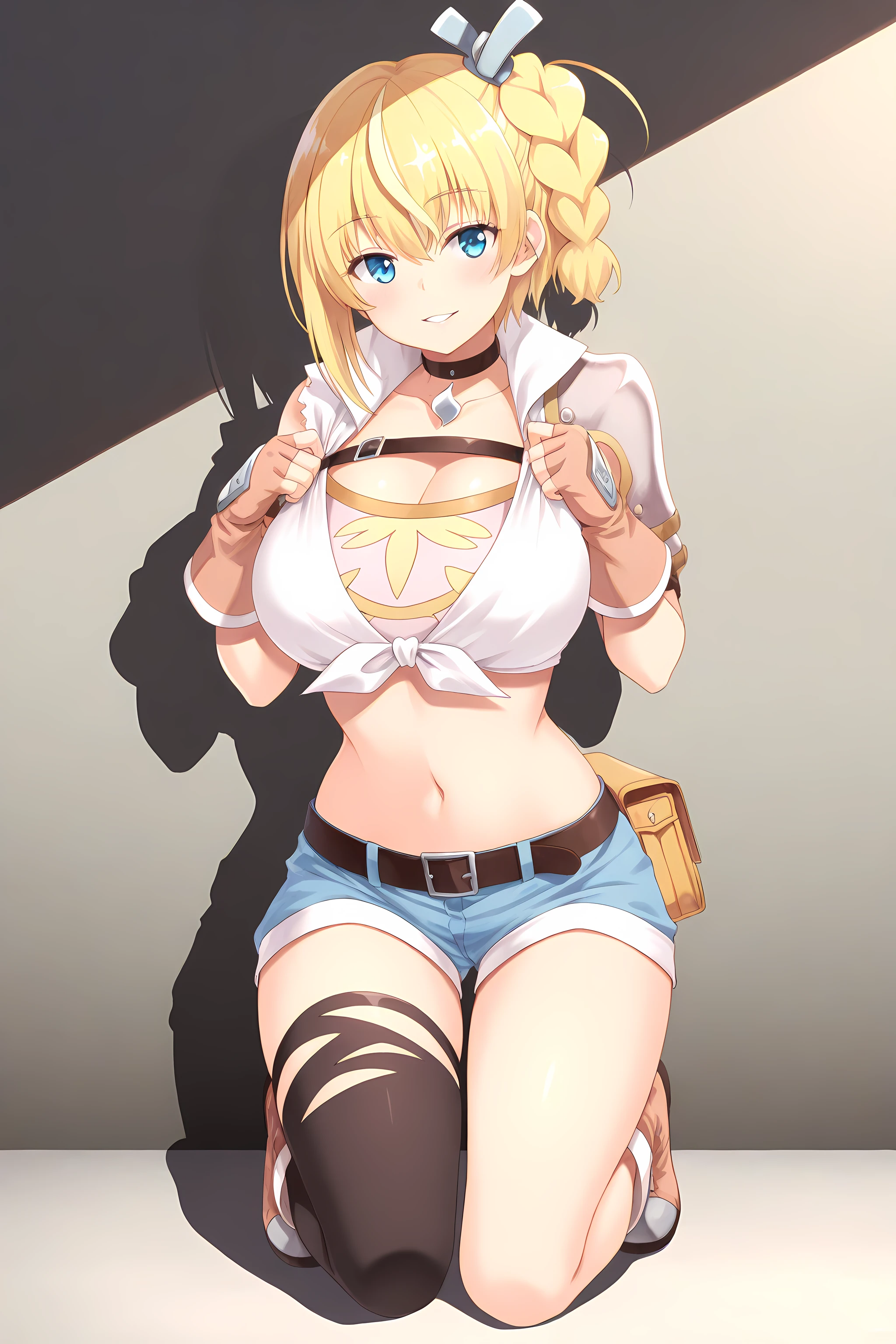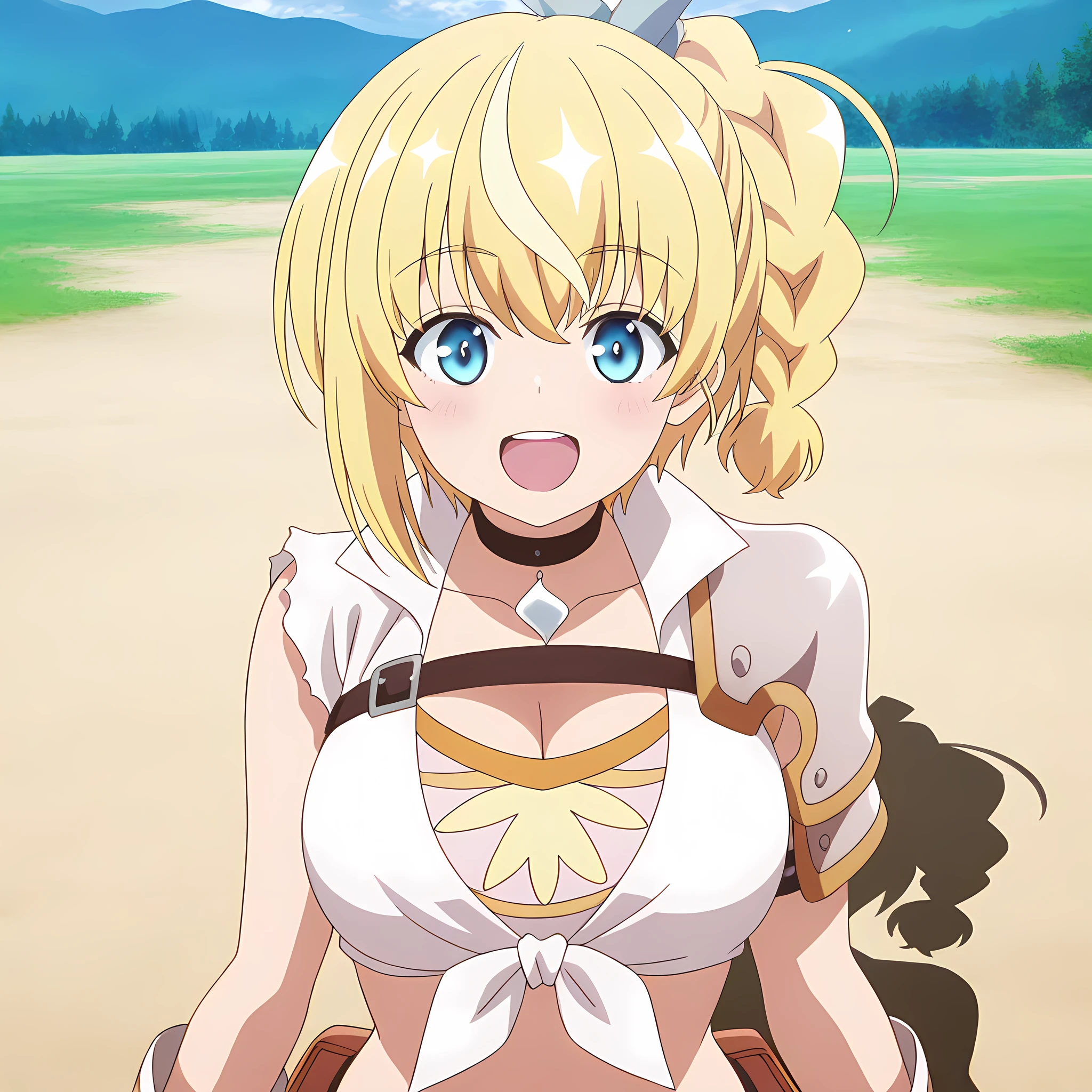 lammis, 1girl, blonde hair, streaked hair, braid, blue eyes, large breasts,