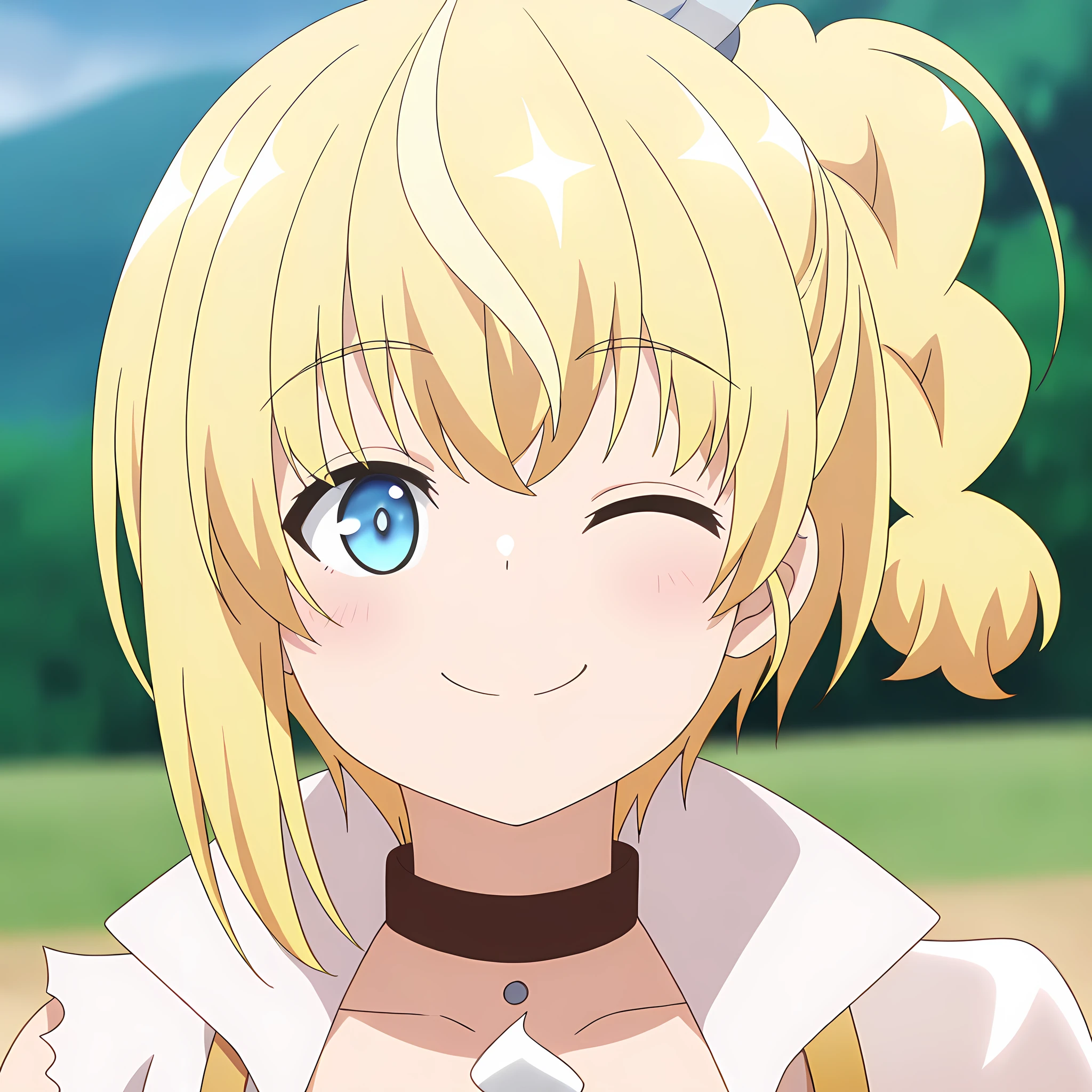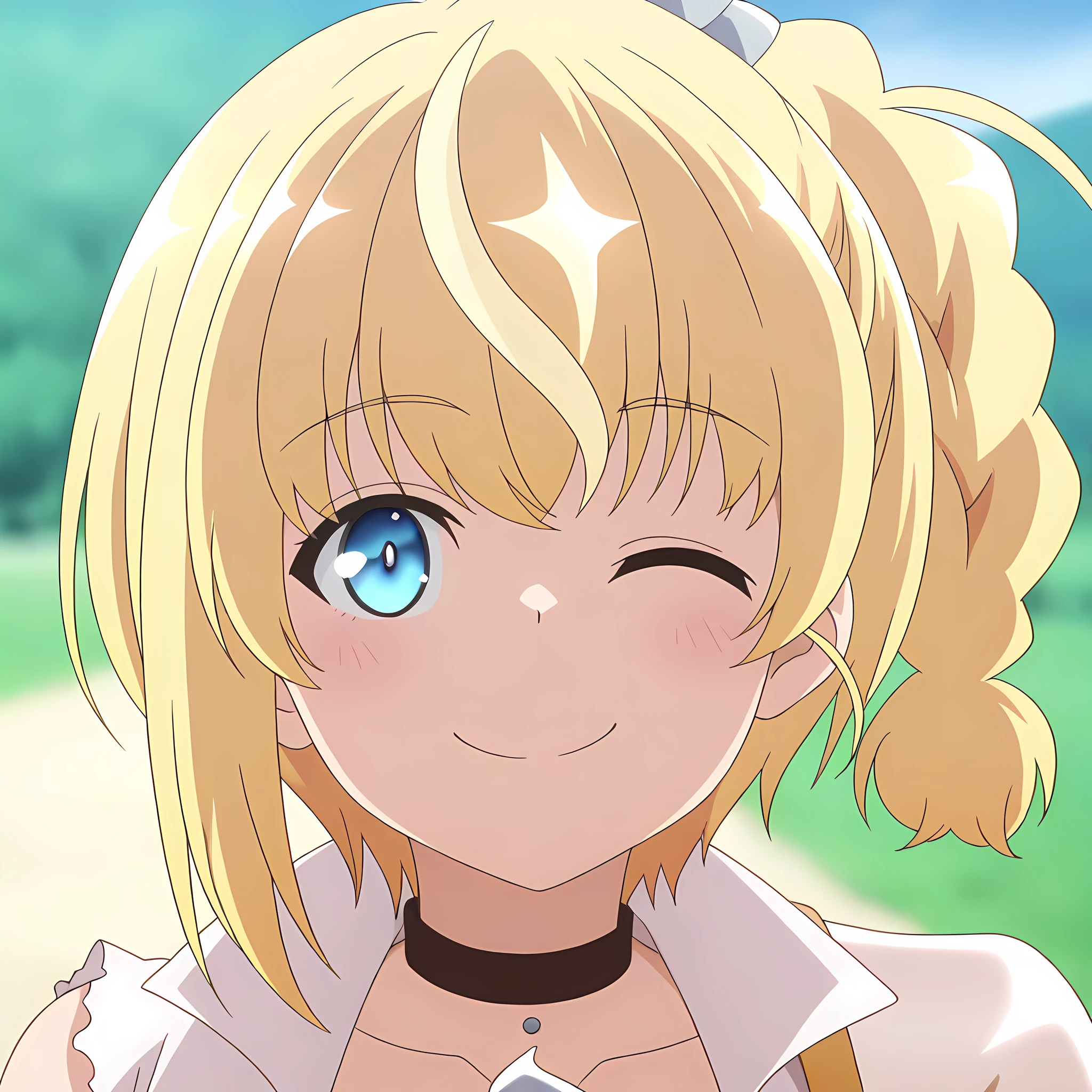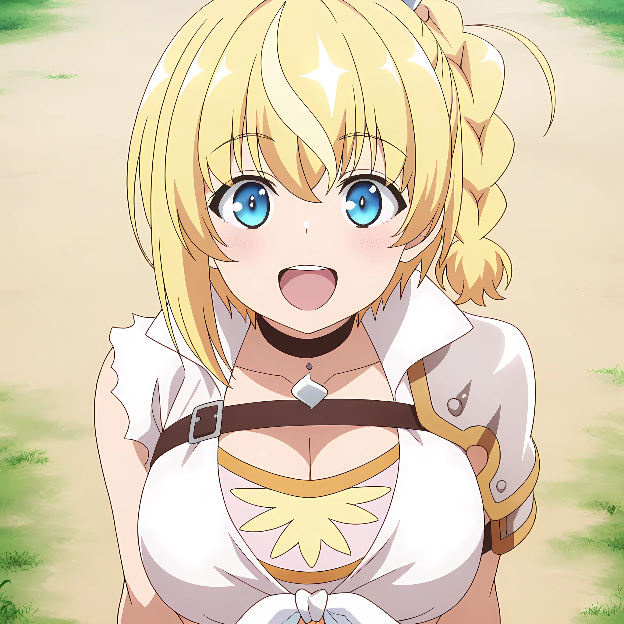 lammis, 1girl, blonde hair, streaked hair, braid, blue eyes, large breasts,