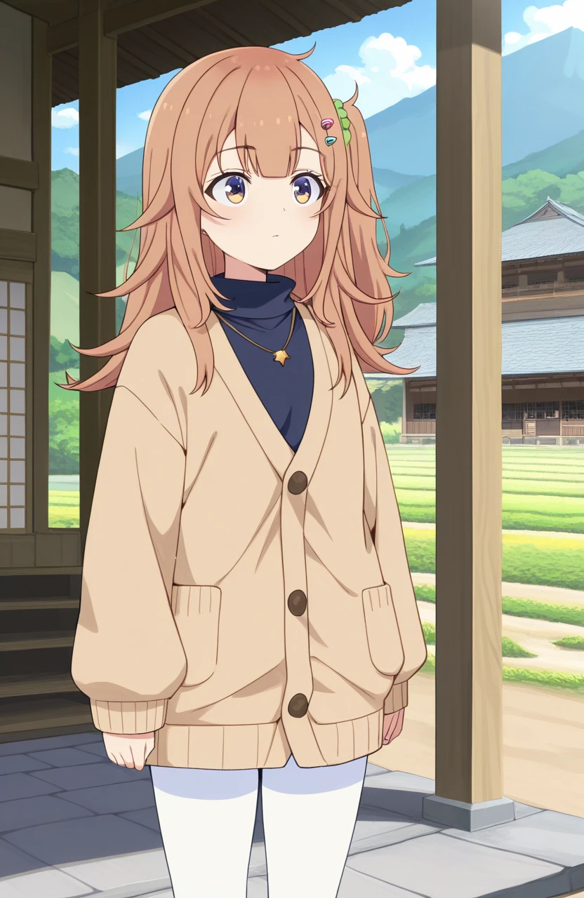 Outfit 5: shicasual6, necklace, light brown cardigan, dark blue turtleneck sweater, white pantyhose