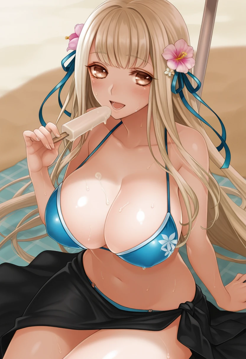 rokurou_muramasa, blonde hair, long hair, brown eyes, large breasts