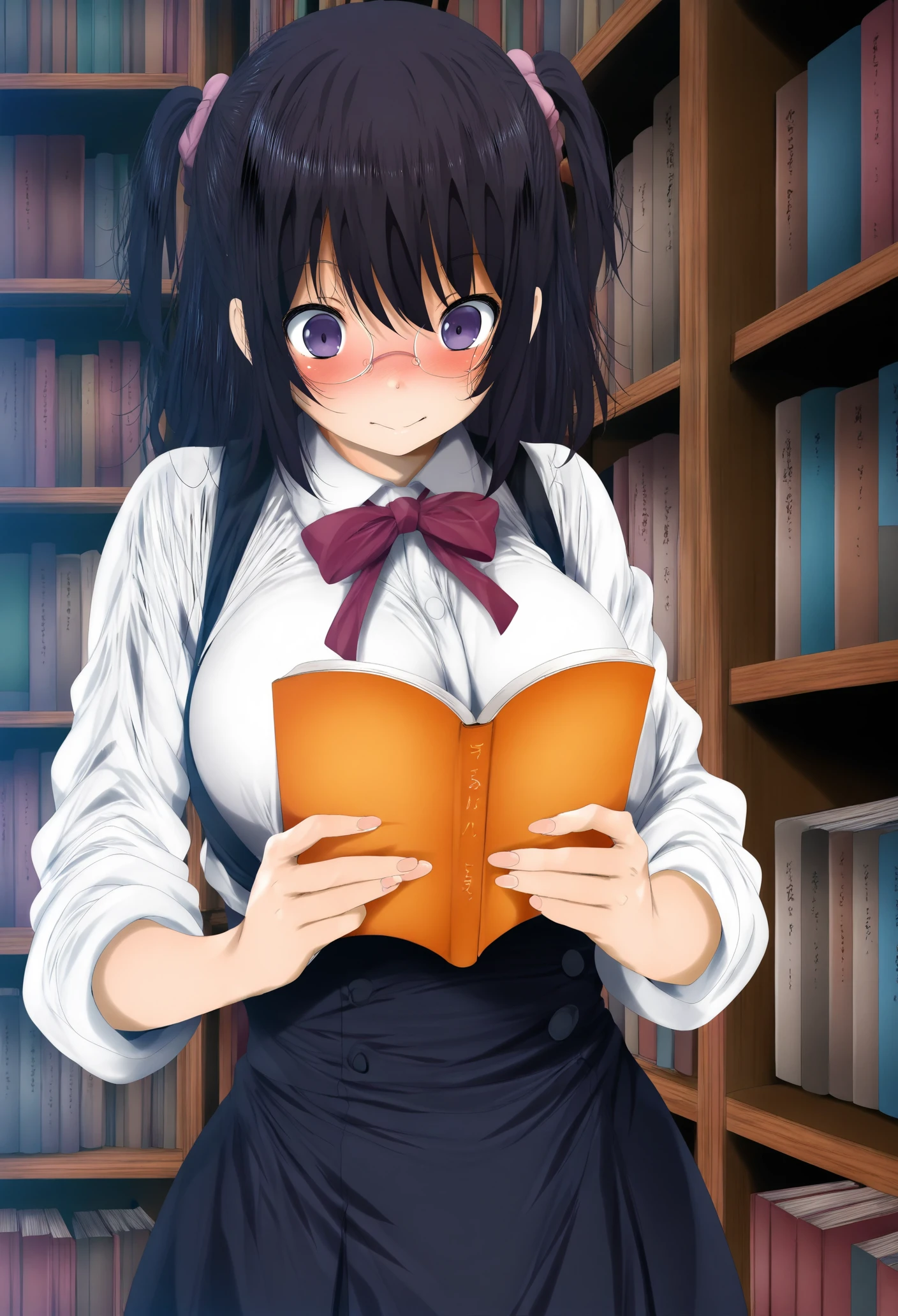When generating a general image, please add the reverse word: 'blush, symbol shaped Pupils'