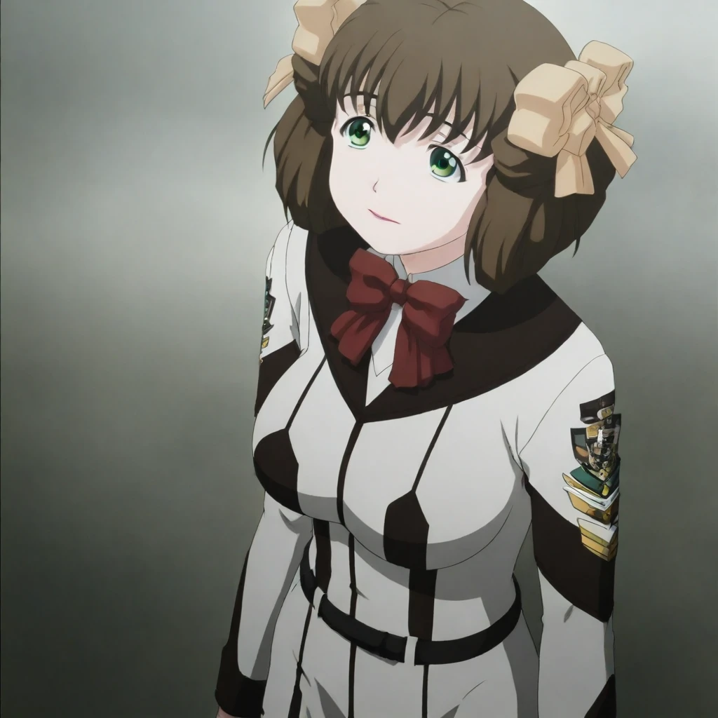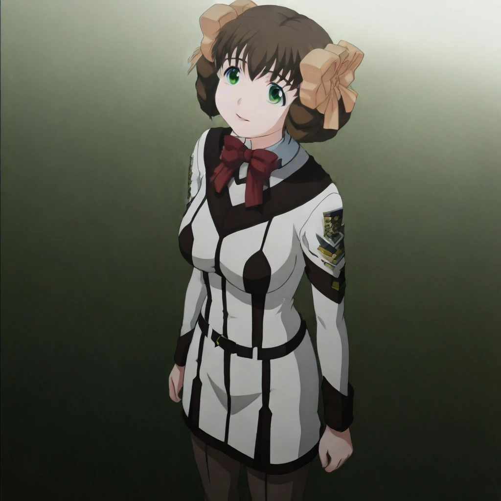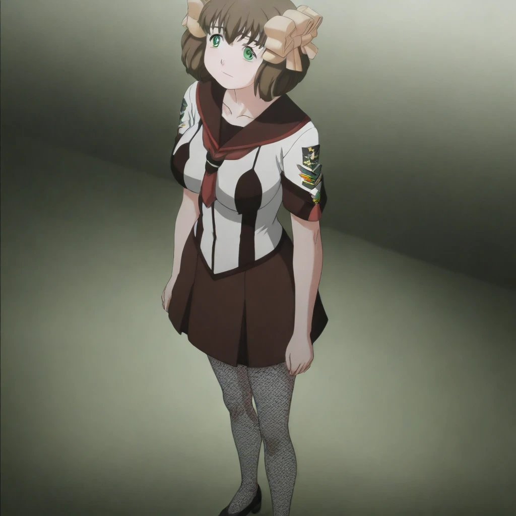 Nonomi_Higashihara 1Girl Solo Aged Up, Adult Female, 18 Years Old, Tall Woman, Tall Height, Sexy Body, Very Slim Petite1:1, C-Size Breasts, Large Breasts, Long Hair, Brown Hair, Neat Hair, Bangs, Green Eyes, Brown Eyebrows, Sharp Eyeliner, Eyelashes, Outlined Iris, Ombre, Detailed Eyes:1, Makeup, Pink Lipstick School Uniform, Red Bowtie, Long Sleeves Grey Buttoned Up Shirt, Shirt Tucked In, Pantyhose, Emblem, Long Length Skirt, Black Belt, White Tube Skirt, Brown Mary Jane Shoes