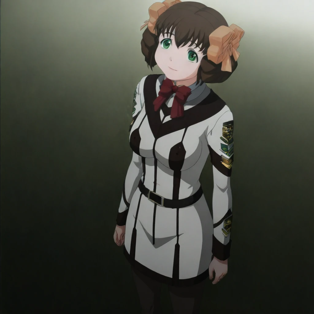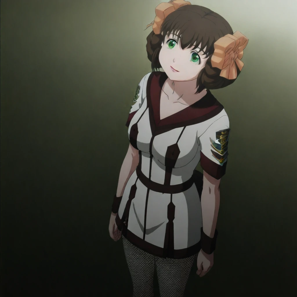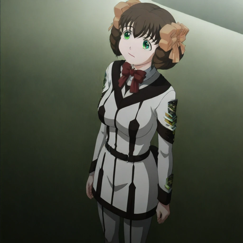 Nonomi_Higashihara 1Girl Solo Aged Up, Adult Female, 18 Years Old, Tall Woman, Tall Height, Sexy Body, Very Slim Petite1:1, C-Size Breasts, Large Breasts, Long Hair, Brown Hair, Neat Hair, Bangs, Green Eyes, Brown Eyebrows, Sharp Eyeliner, Eyelashes, Outlined Iris, Ombre, Detailed Eyes:1, Makeup, Pink Lipstick School Uniform, Red Bowtie, Long Sleeves Grey Buttoned Up Shirt, Shirt Tucked In, Pantyhose, Emblem, Long Length Skirt, Black Belt, White Tube Skirt, Brown Mary Jane Shoes