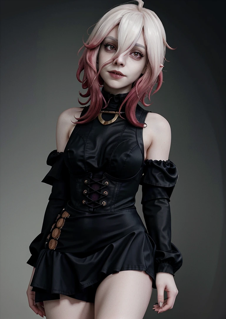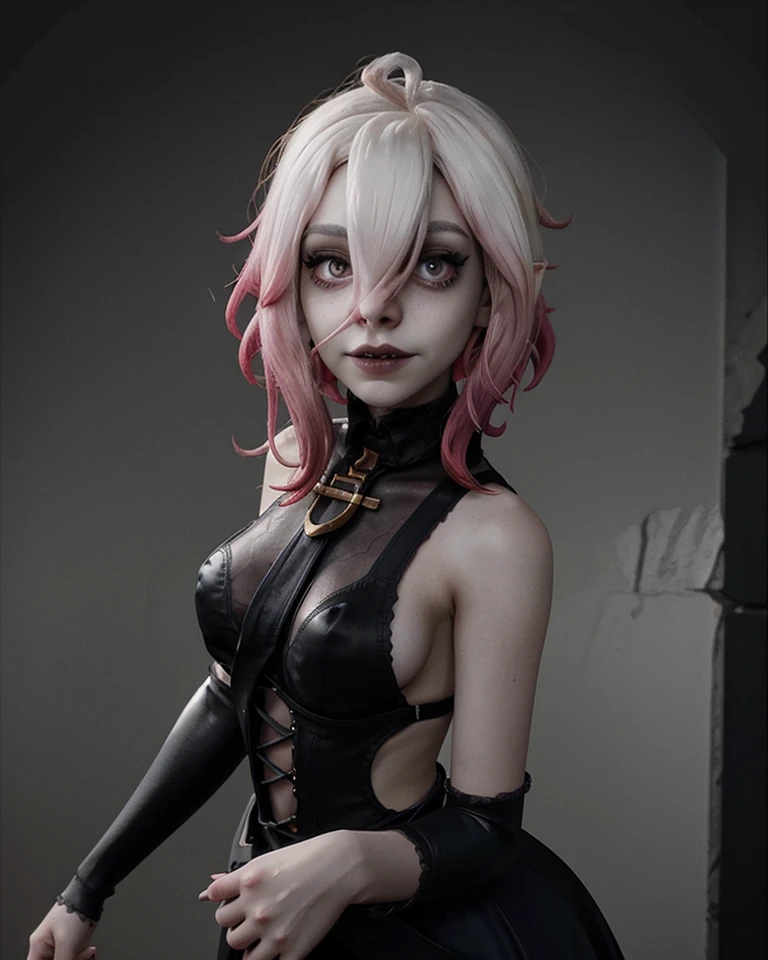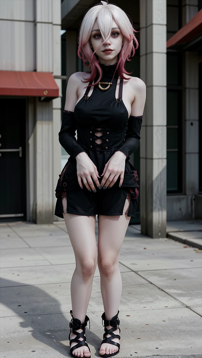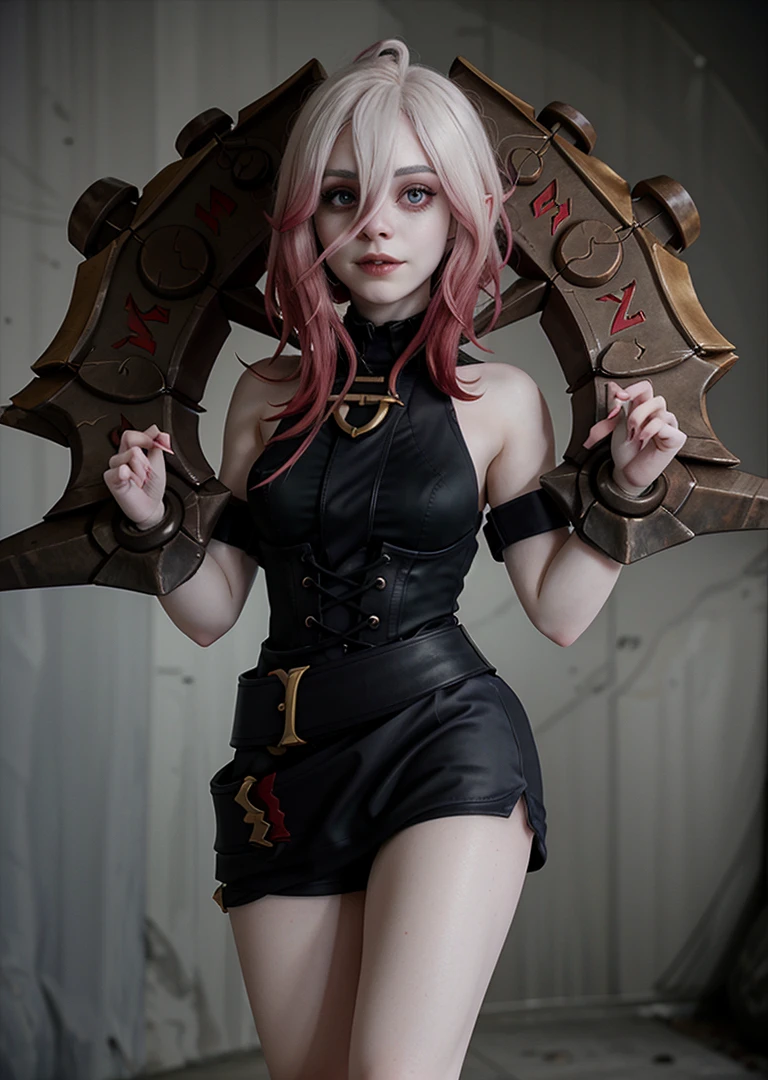 1girl, briarlol, messy bangs, ((pale hair)), ((official briar_(league_of_legends))), ((floating hands weapon)), (gothic style black dress), strappy footwear,
