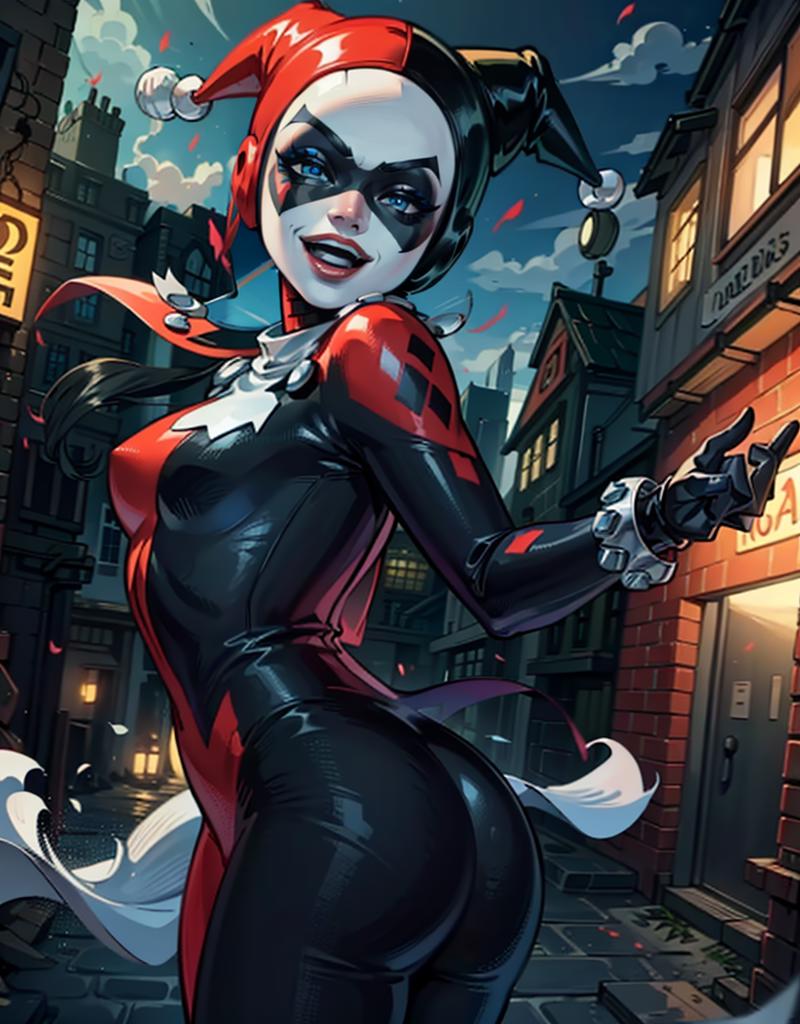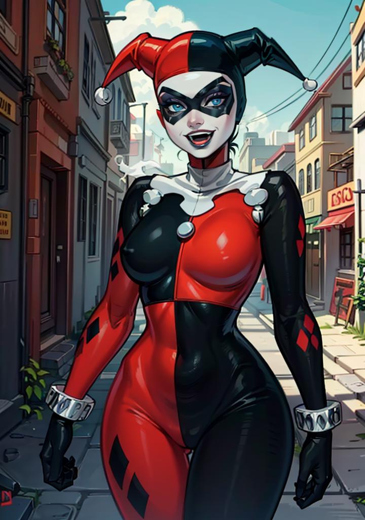 REMEMBER to follow the social networks and ask for your own model.Hello, guys! Taking a break from princesses, here comes a wicked villainess who has us all captivated in her classic version. That's right, I'm talking about Harley Quinn. Use the model with a strength range of <0.8 - 0.5> for greater flexibility. Compatible with LoRas. Use the keyword "HarleyWaifu" for more precision. Use the following words to summon her outfit and characteristics: "(blue eyes, mask, domino mask, hat, bodysuit, jester cap, makeup, facepaint, gloves), (Makeup)" Have fun, and if you liked the model, leave a review :D