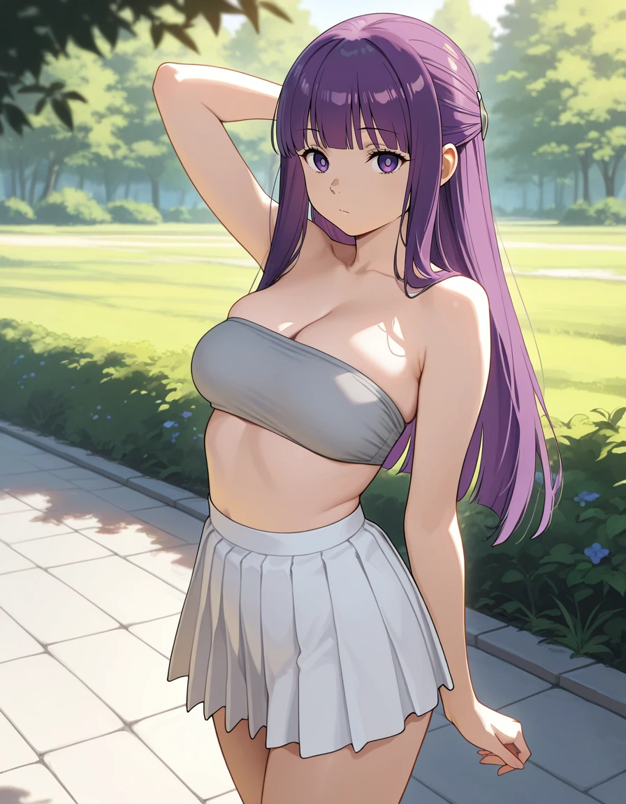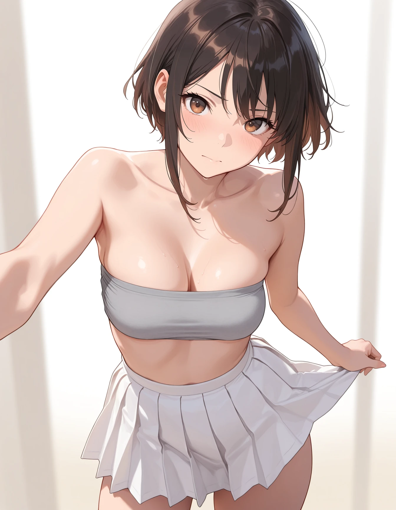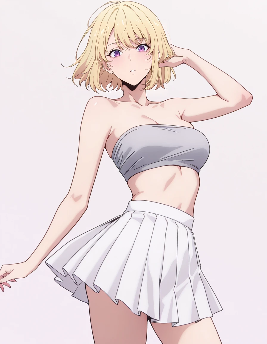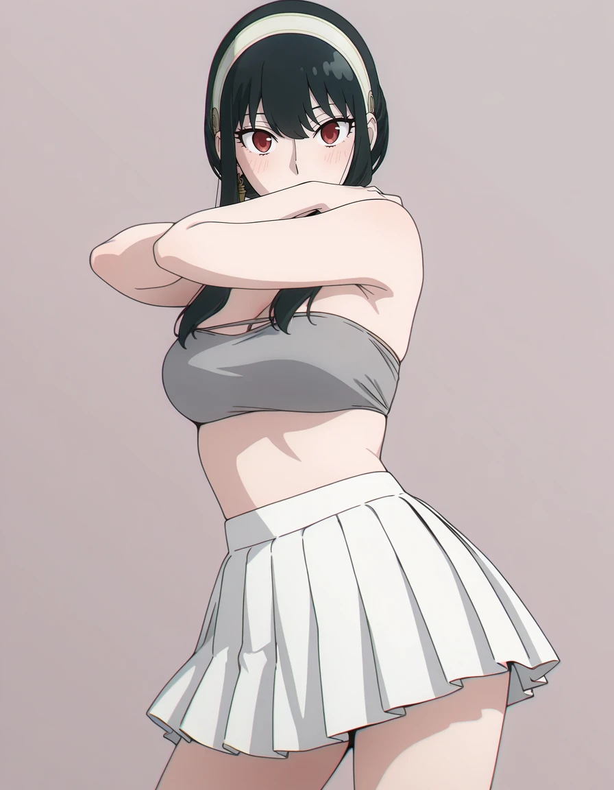 mai_grey_tube_top,pleated_skirt,white_skirt