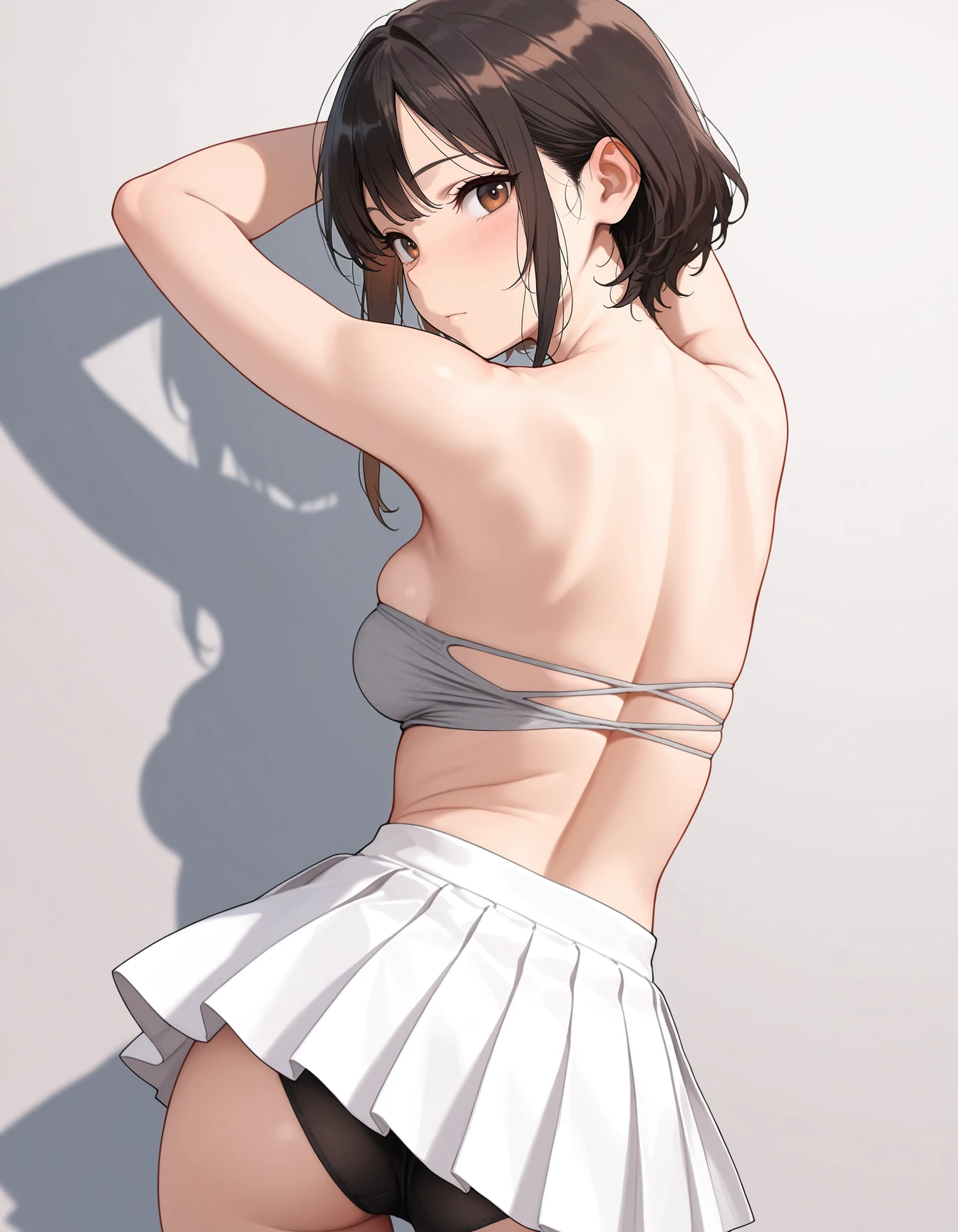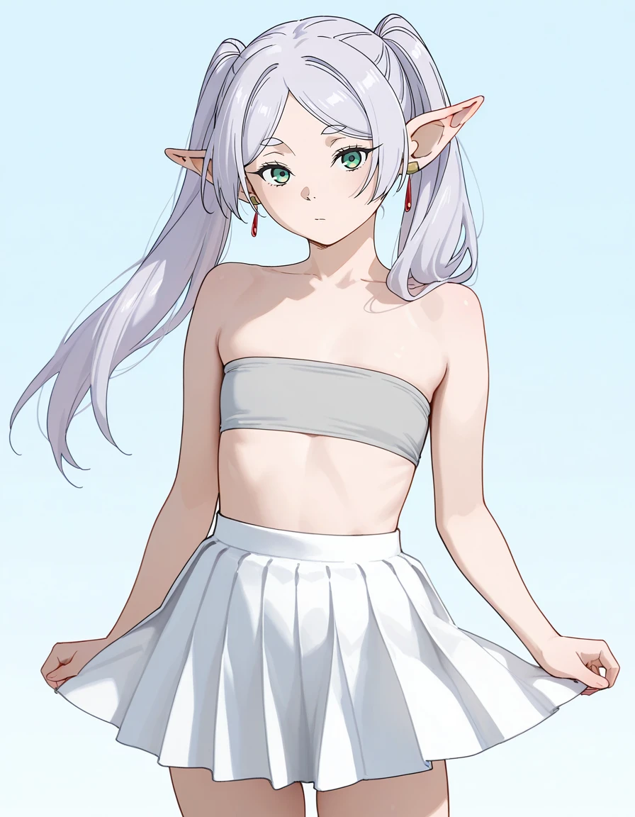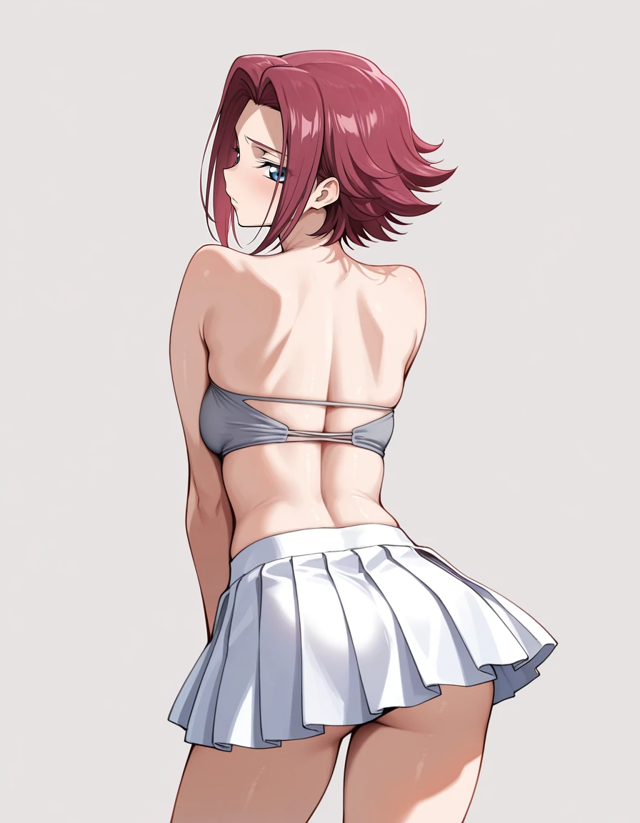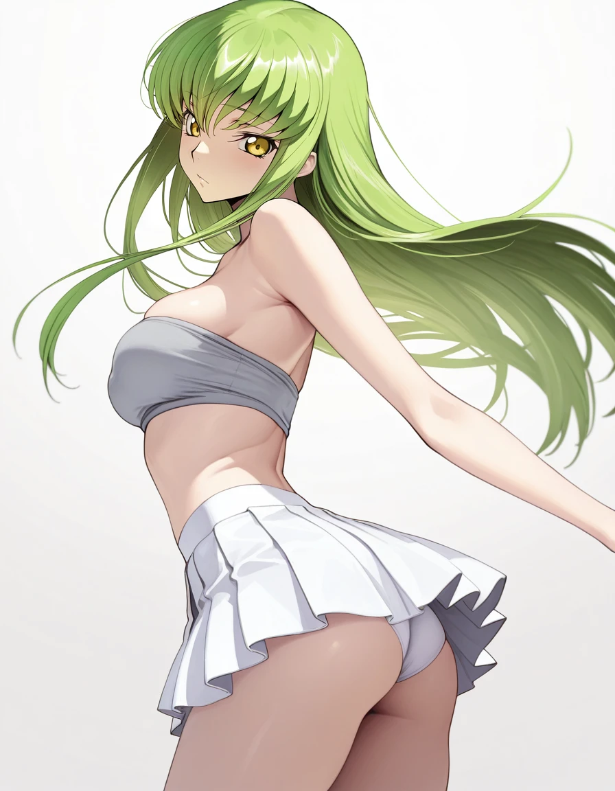 mai_grey_tube_top,pleated_skirt,white_skirt