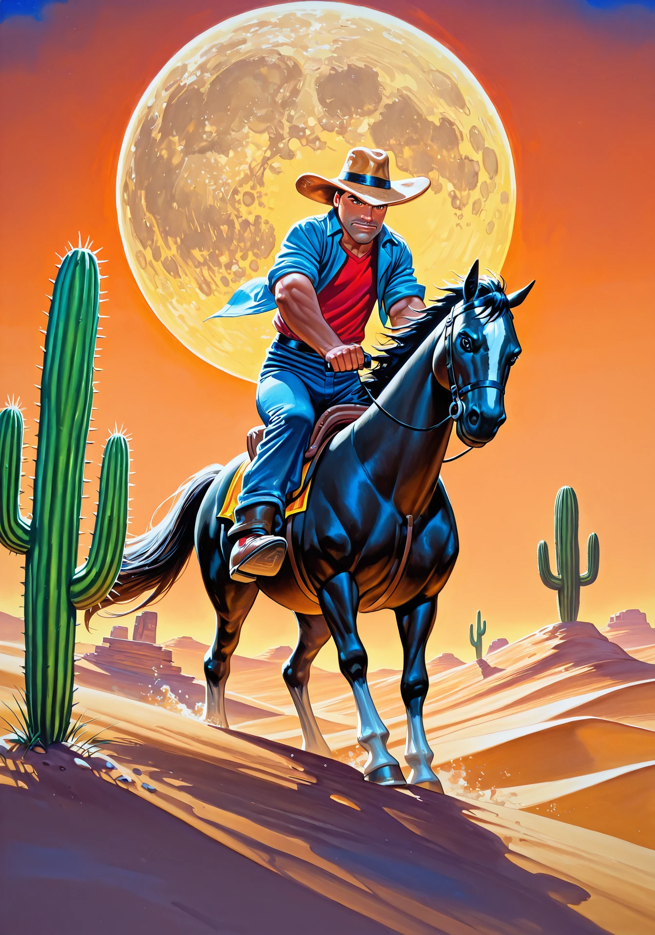 Prolific cover artist, and possibly the most iconic artist of the era. Drew hundreds of covers for a variety of books. Now draws for Marvel comics! Trained mostly on original paintings. When covers were used the magazine logos and other text were edited out, so will not generate text or logos. Subject matter is more diverse than the other models, including guns, cars, and animals. Some cowboy/western art as well. This one has more men in the image sources than the others.Manuel Martinez Navarrete