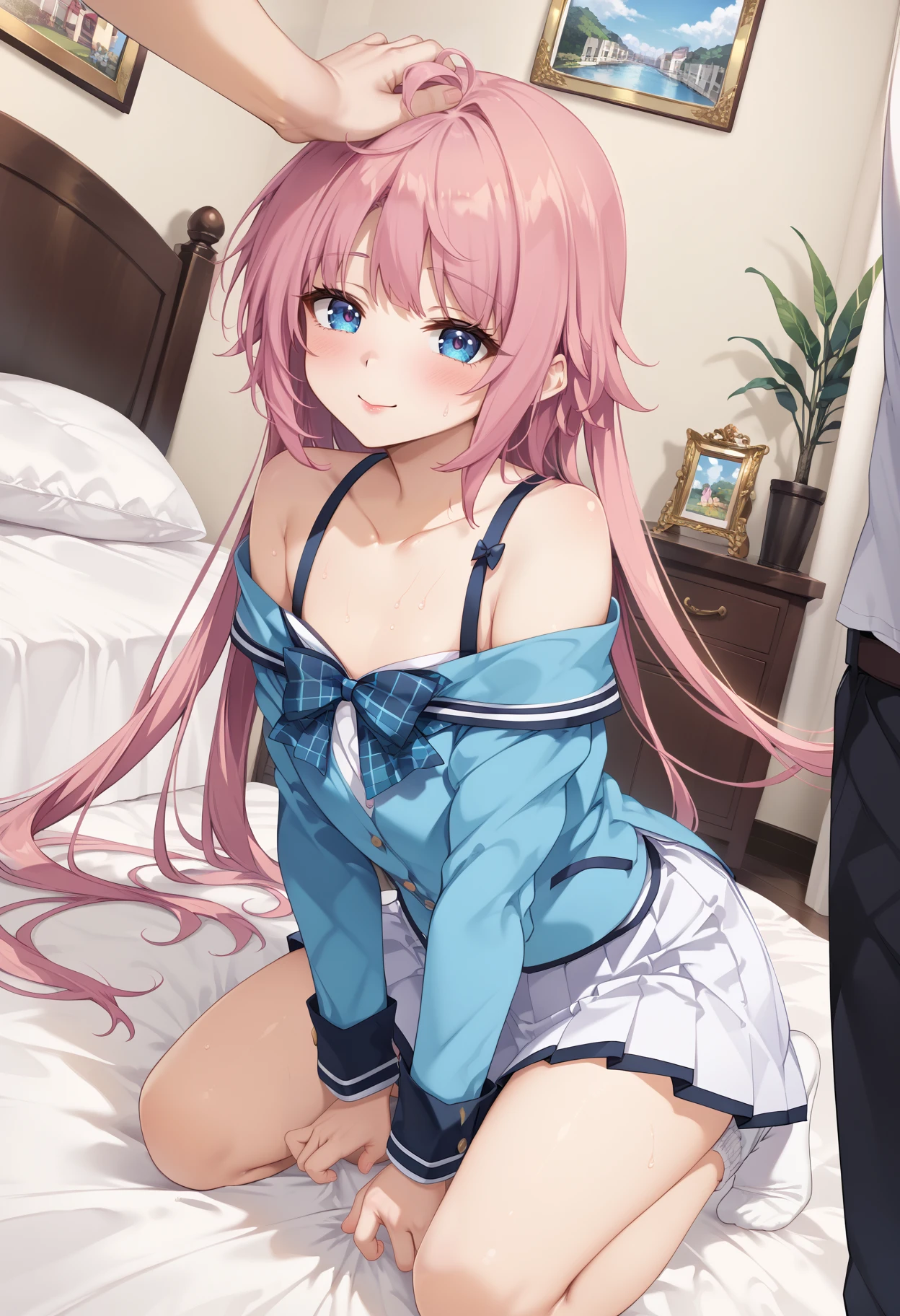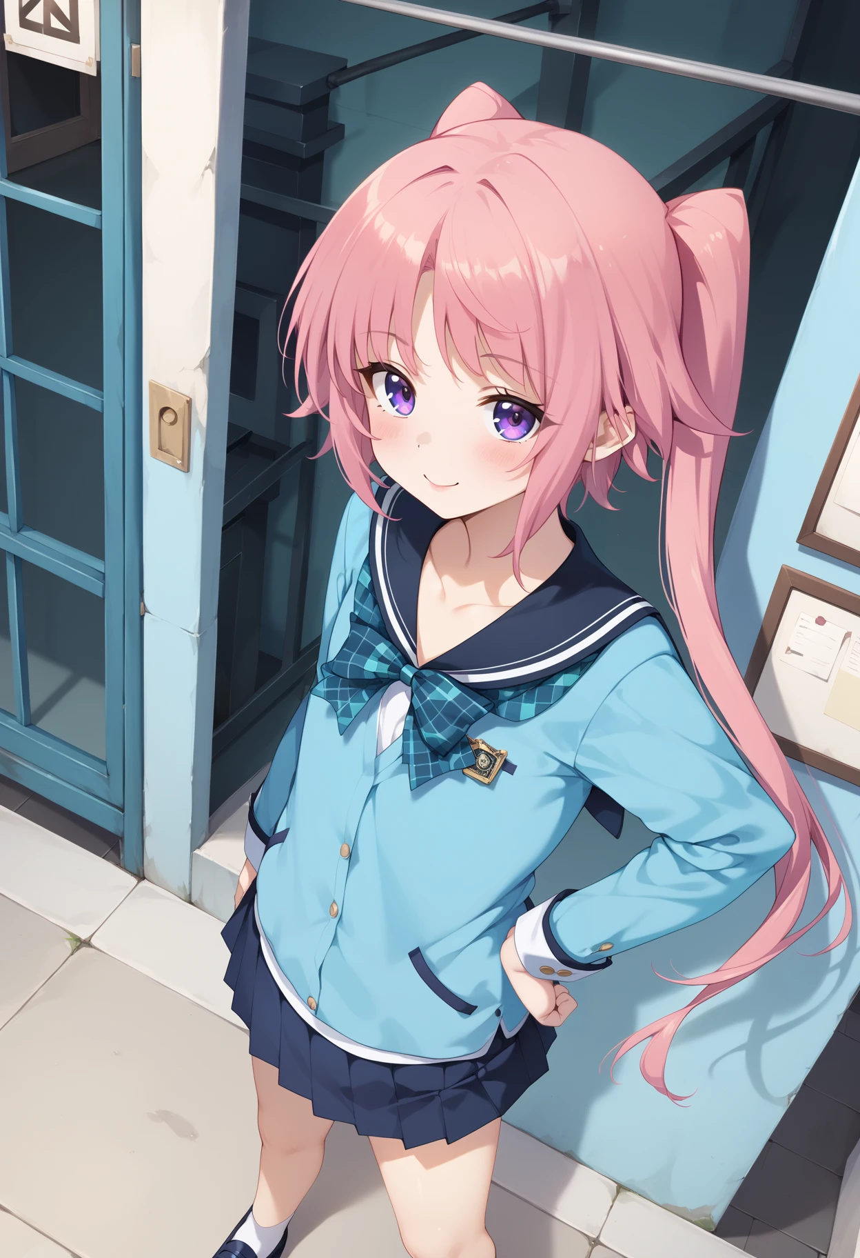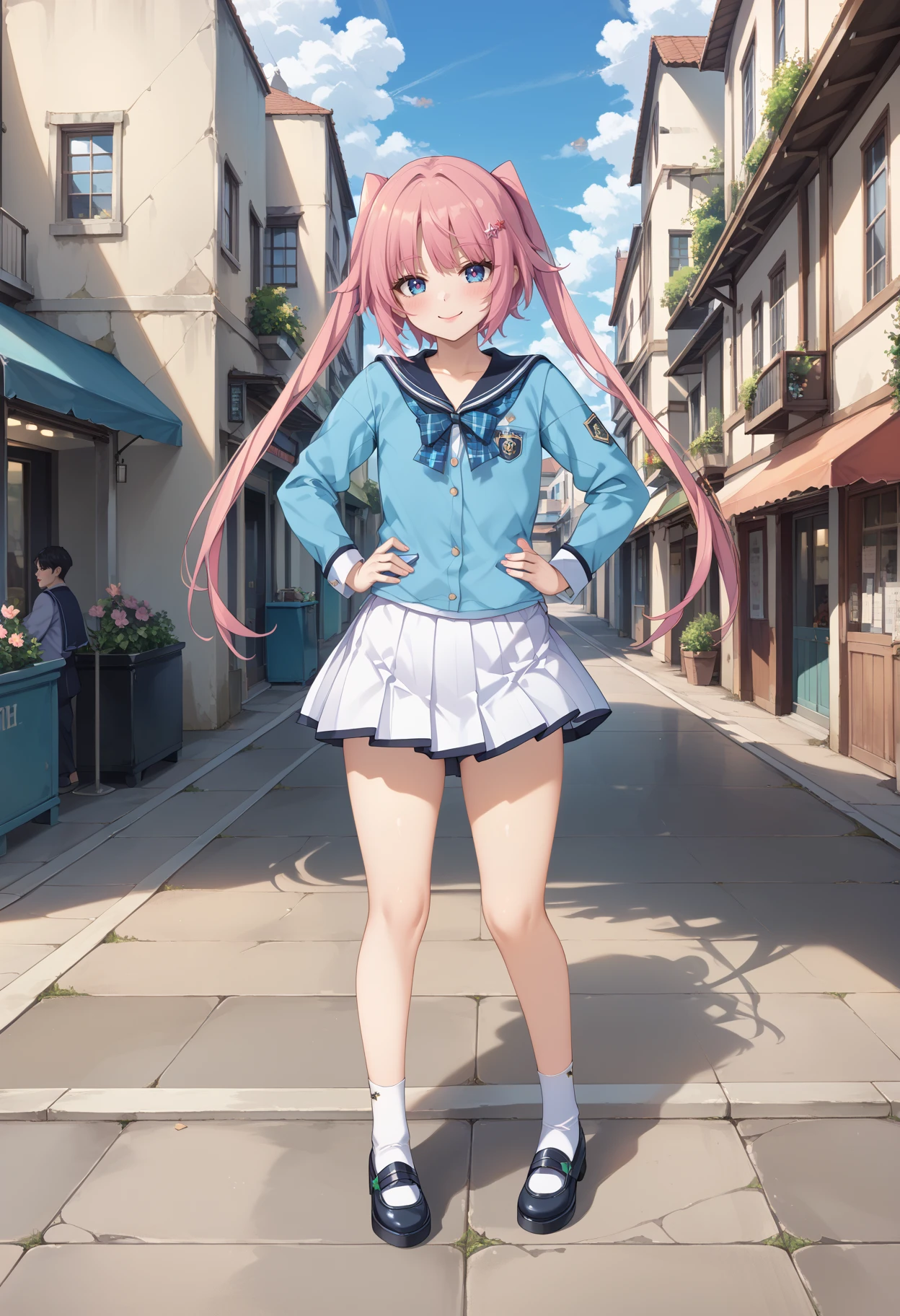 h_clotheslong_sleeves,light blue uniform,white pleated skirt,flat chest,