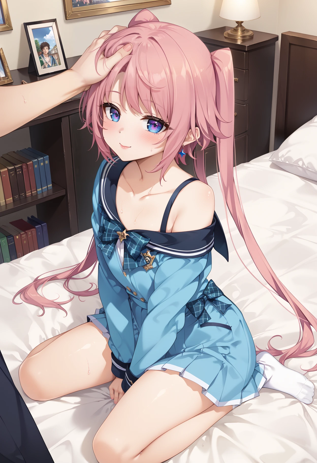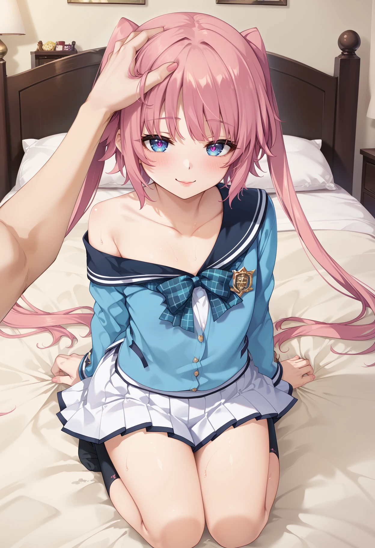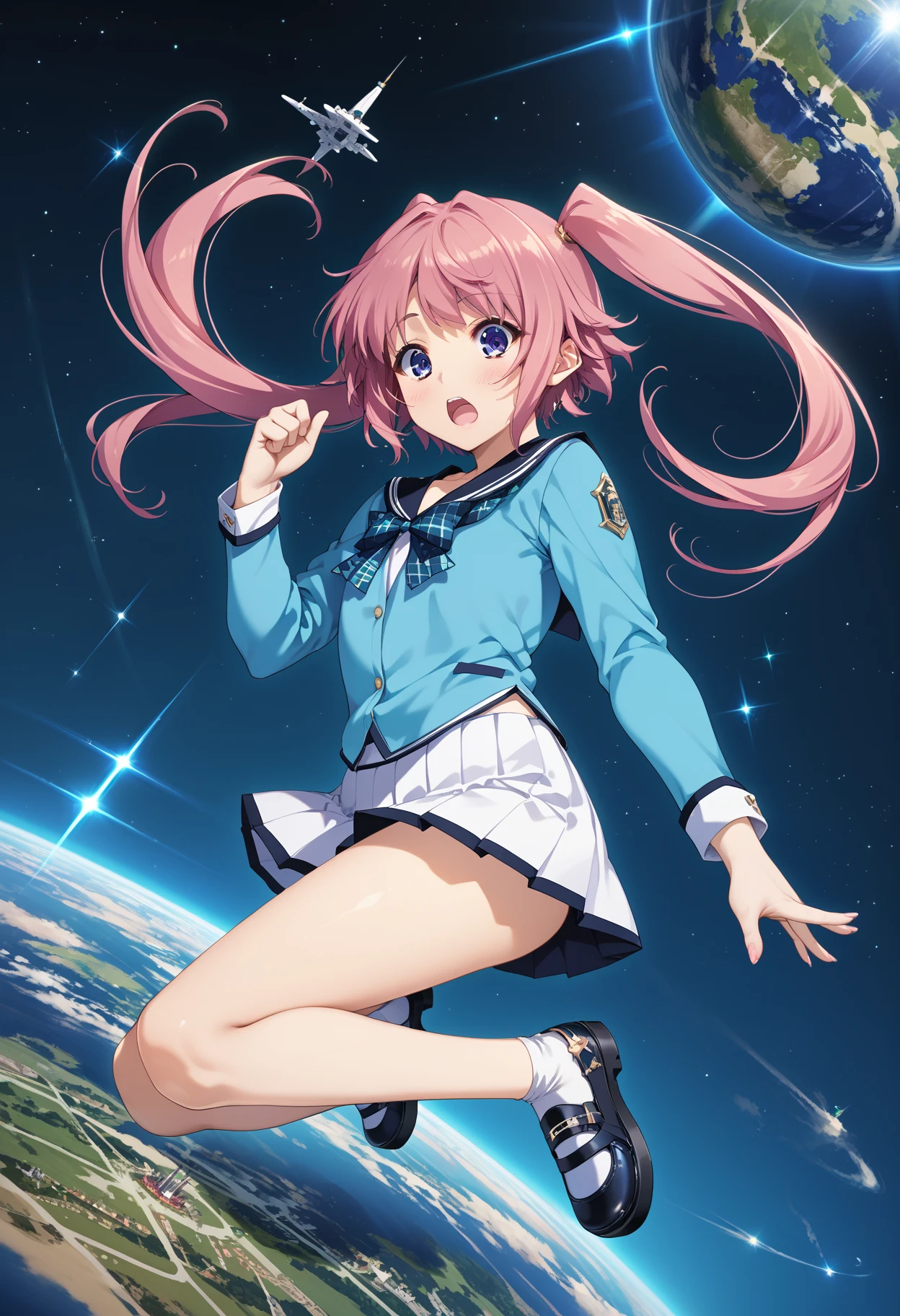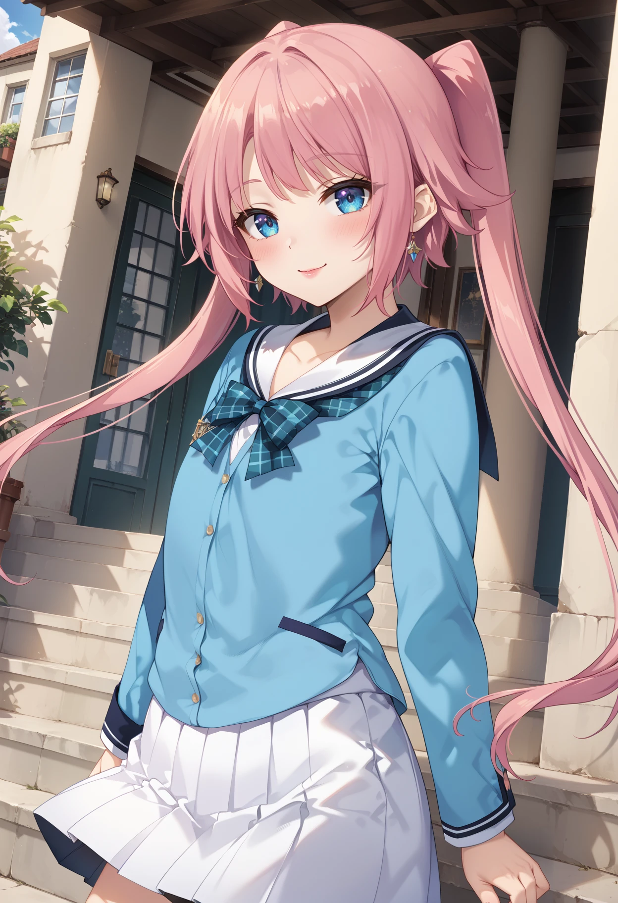 h_clotheslong_sleeves,light blue uniform,white pleated skirt,flat chest,