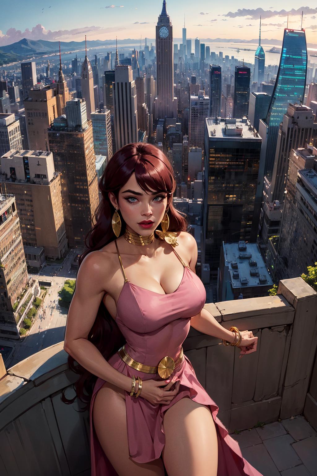 pink dress, red hair