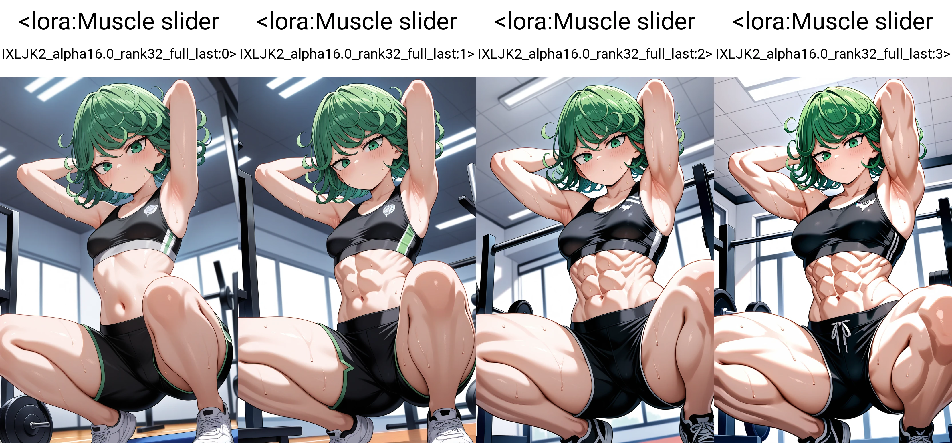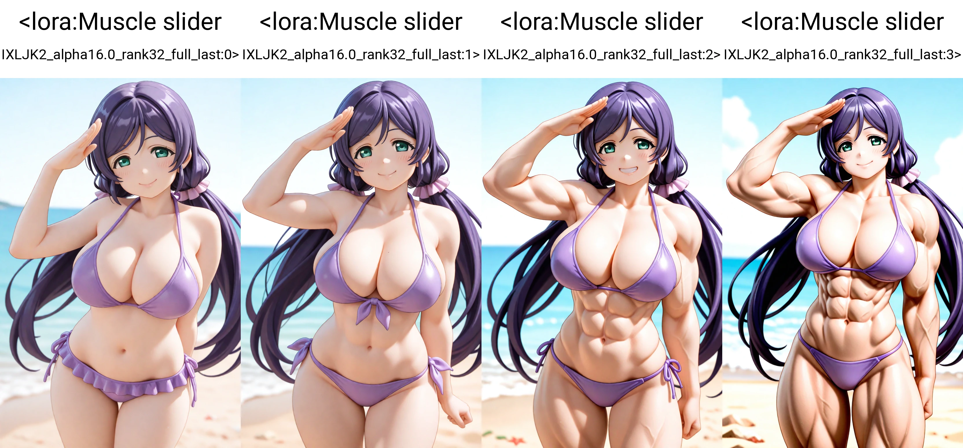 This is a slider LoRA - you can choose whatever weight you want, so experiment and find what suits you best. A positive weight adds muscle. You can use even higher weights such as 8 and above - it all depends on characters and checkpoints..