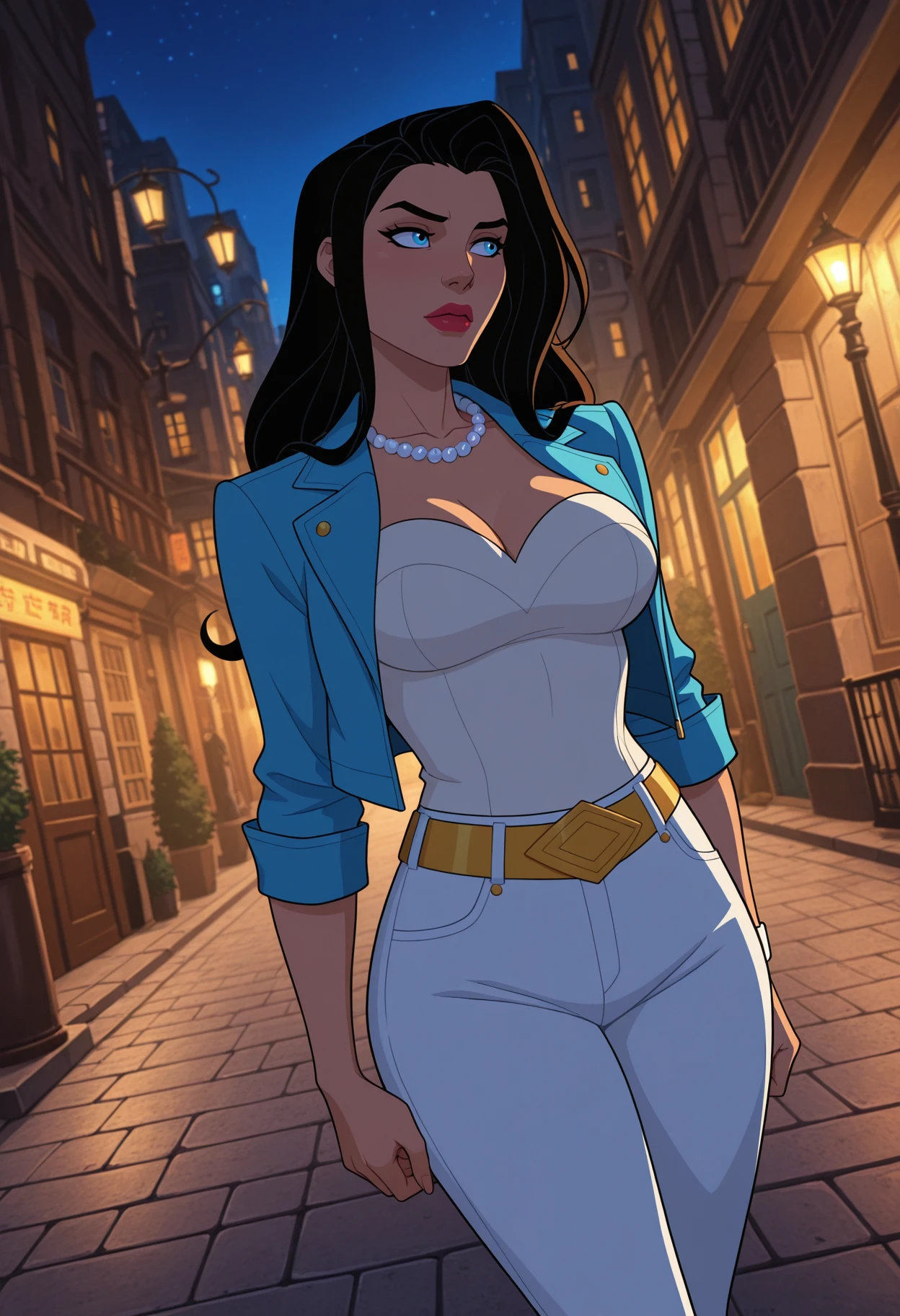 1girl, solo, blue eyes, black hair, long hair, breasts, medium breasts, lips, lipstick,outfit tags: