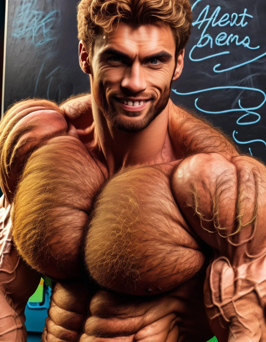 Big hairy chest, adding more weight and attention seems to add more hair and more bigger pecs