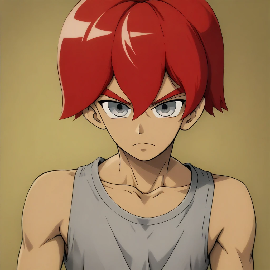 Akiro_Zenshin, red hair, silver eyes, tanktop