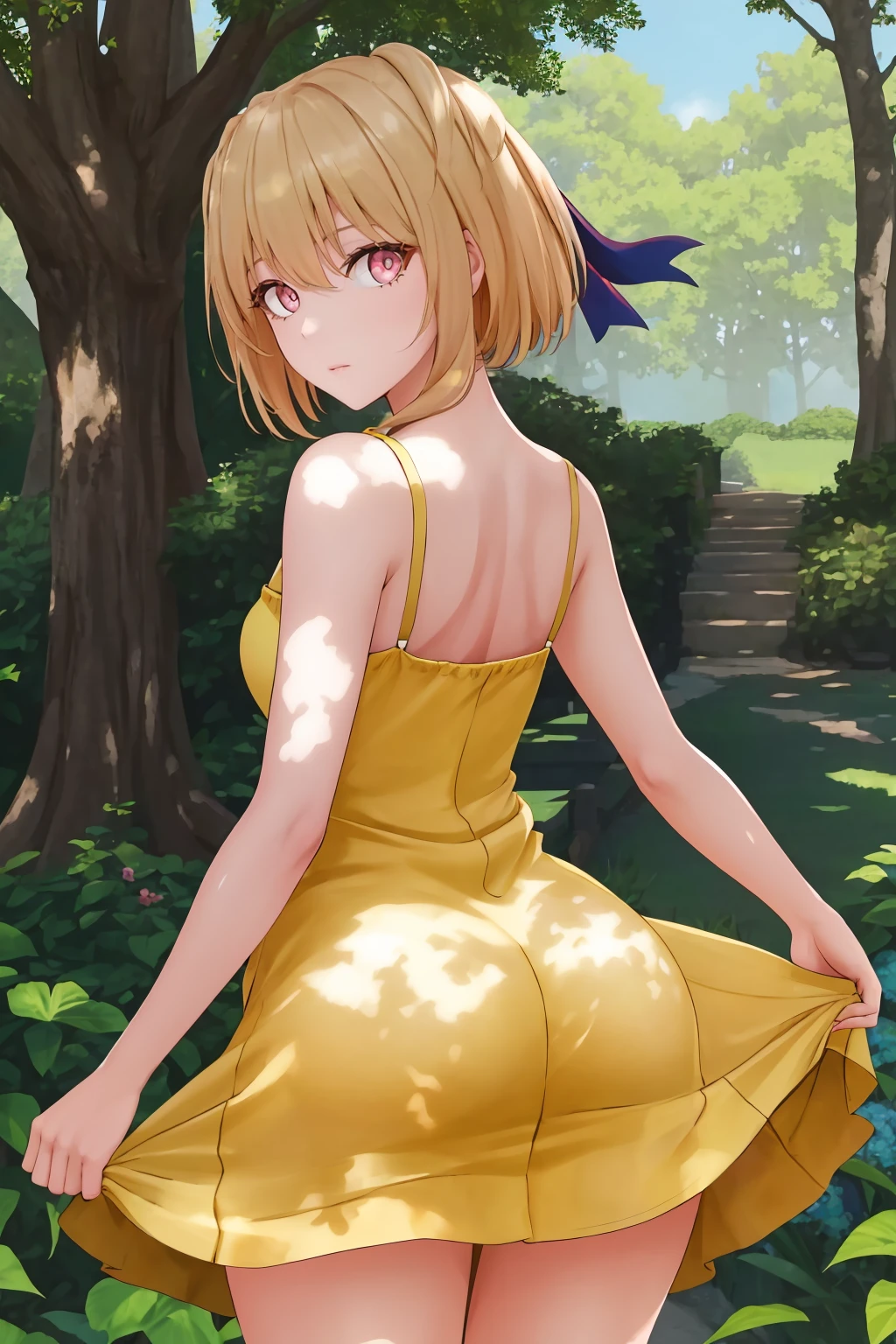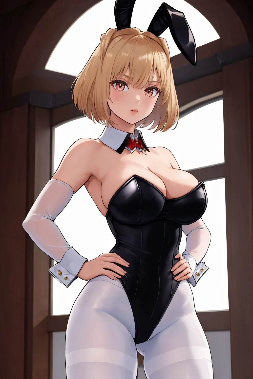 fingerless gloves, hair ribbon