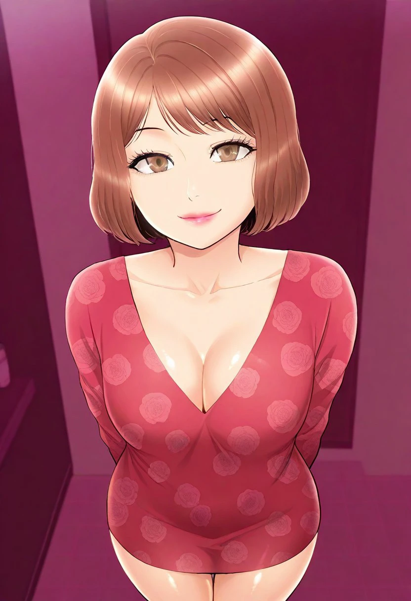 (( <lora:ye-won:1> , ye-won, thin waist, medium hips, beautiful skin, short girl, piercing dark brown eyes, clear eyes, bright pupils, beautiful eyes, beautiful brown hair, beautiful medium bob haircut, bangs, medium breasts, natural beauty, extraordinary beautiful cute woman, attractive and cute woman, super sexy cute woman, lustful body, sexy woman with seductive obscene body, sensual body, voluptuous body, cute sexy beauty, no piercings, no piercing, )) ,