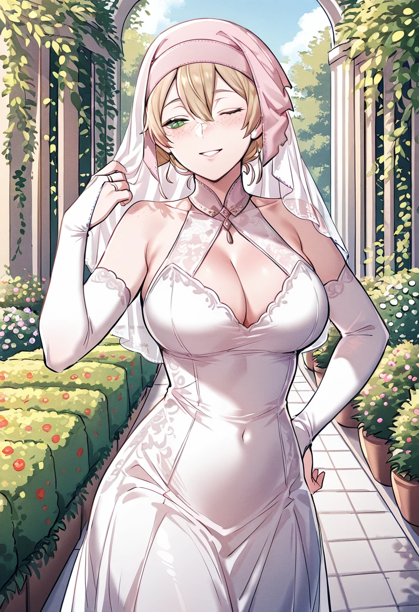 Trigger Words (General Traits): VMaidenFEA, mature female, blonde hair, short hair, freckles, green eyes, pink headscarf,