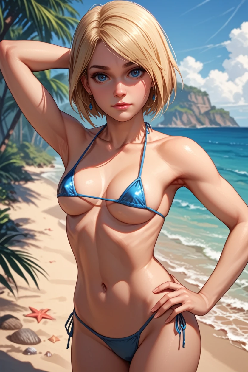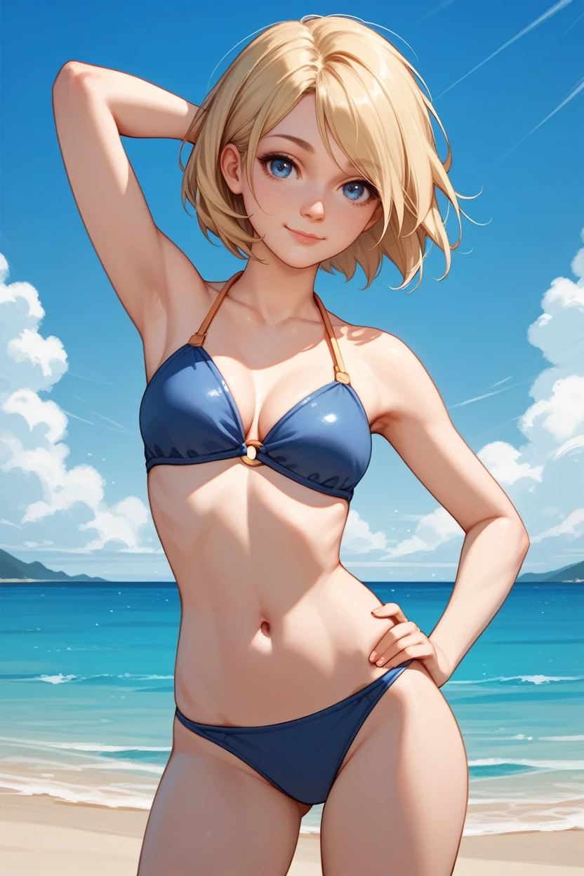 I2SGirl, 1girl, blonde hair, blue eyes, short hair