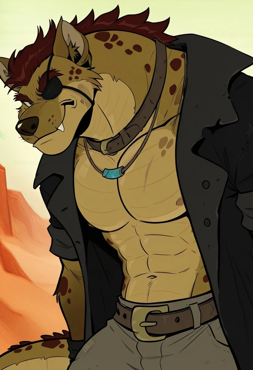 Gnoll, Sc4r, Hybrid, reptile tail, Hyena, Brown hair, Patch over right eye,