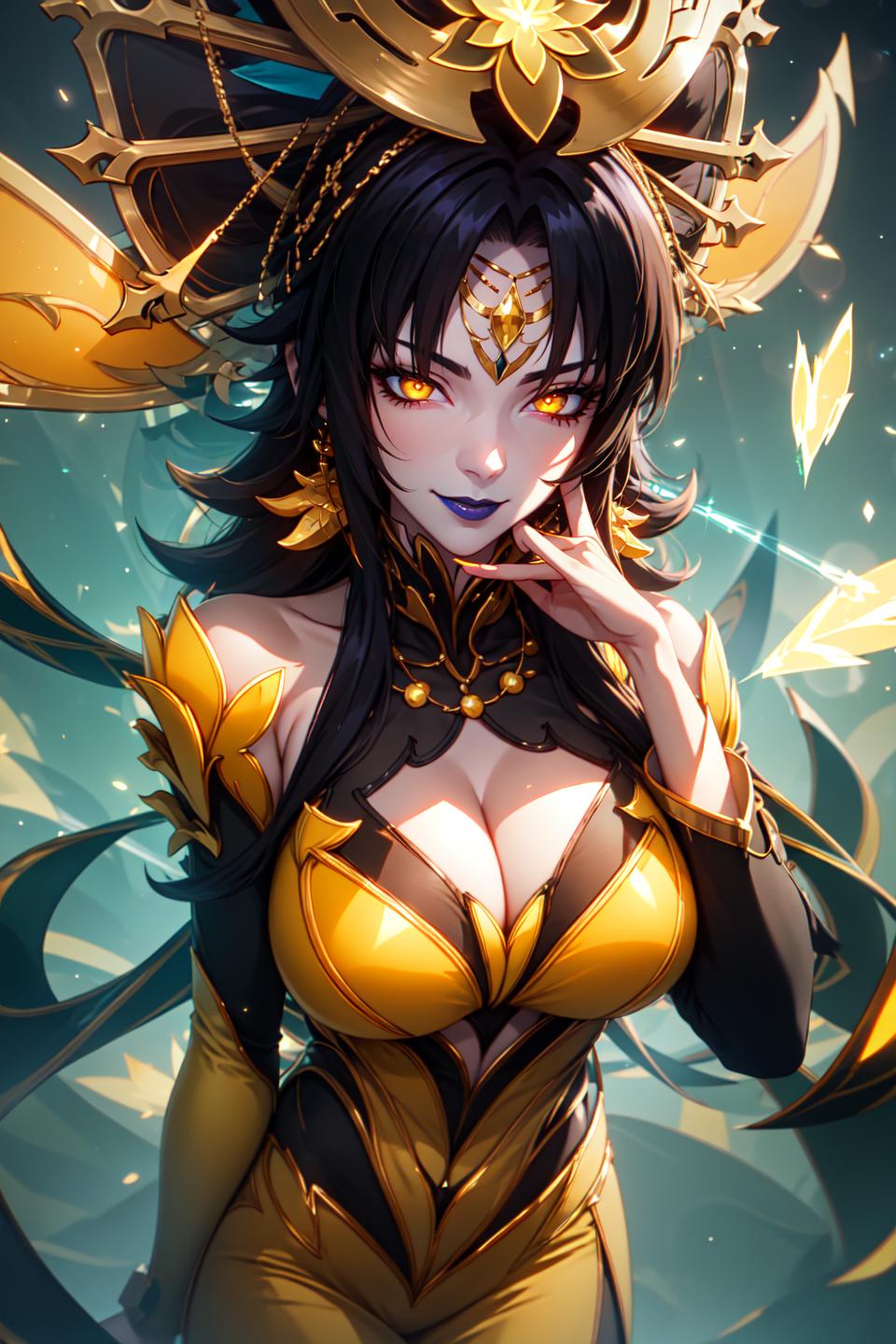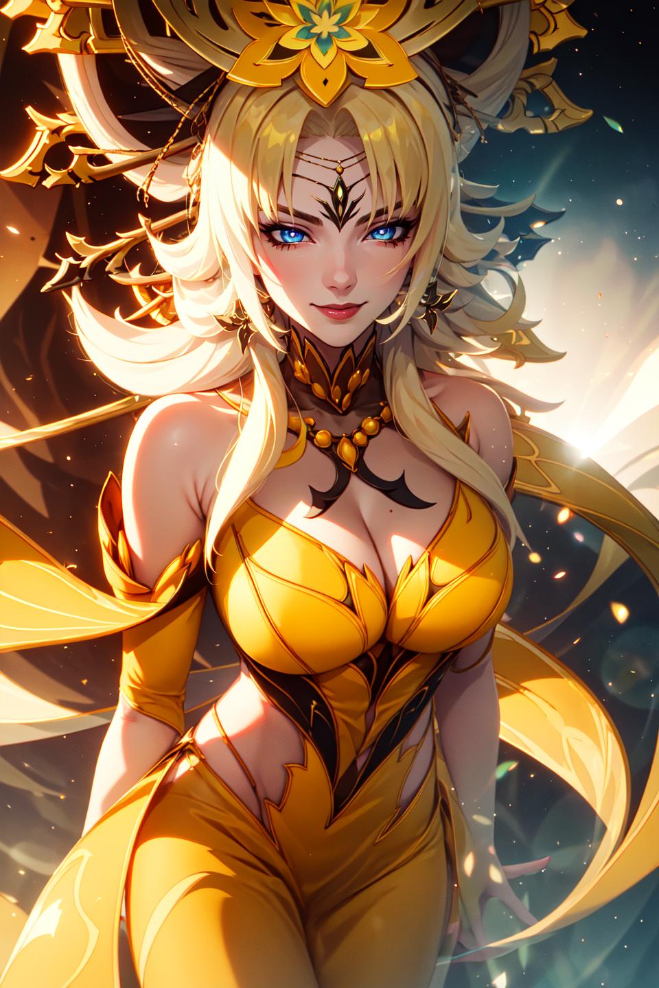 For yellow: blonde hair, very long hair, blue eyes, yellow dress,