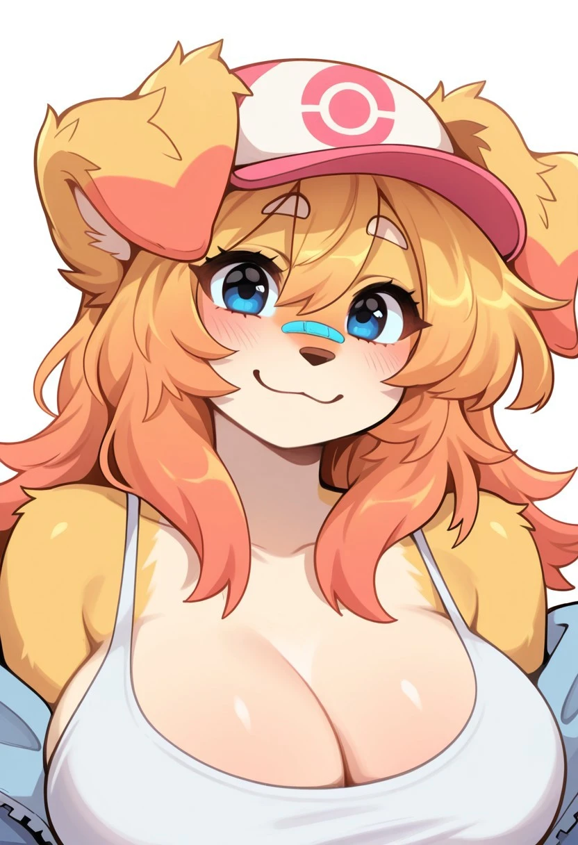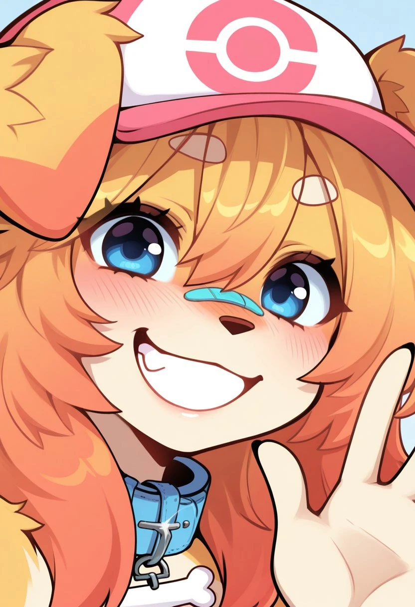 furry female, dog girl, blue eyes, blonde hair, orange hair