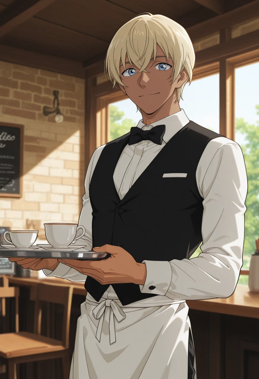 amurotooru,blonde hair,short hair,blue eyes,dark skin,dark-skinned male