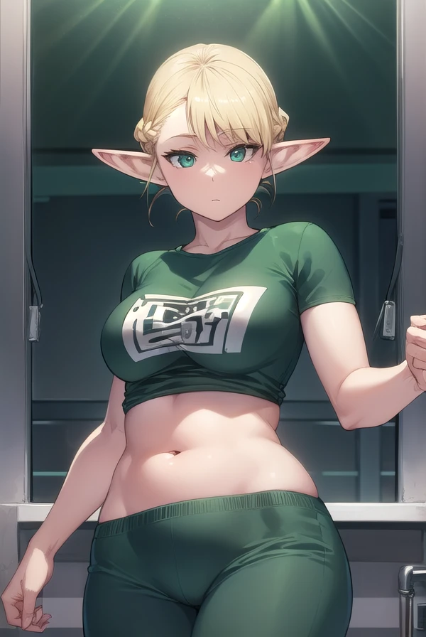 erufuda, short hair, pointy ears, elf, blonde hair, (green eyes:1.5), braid,