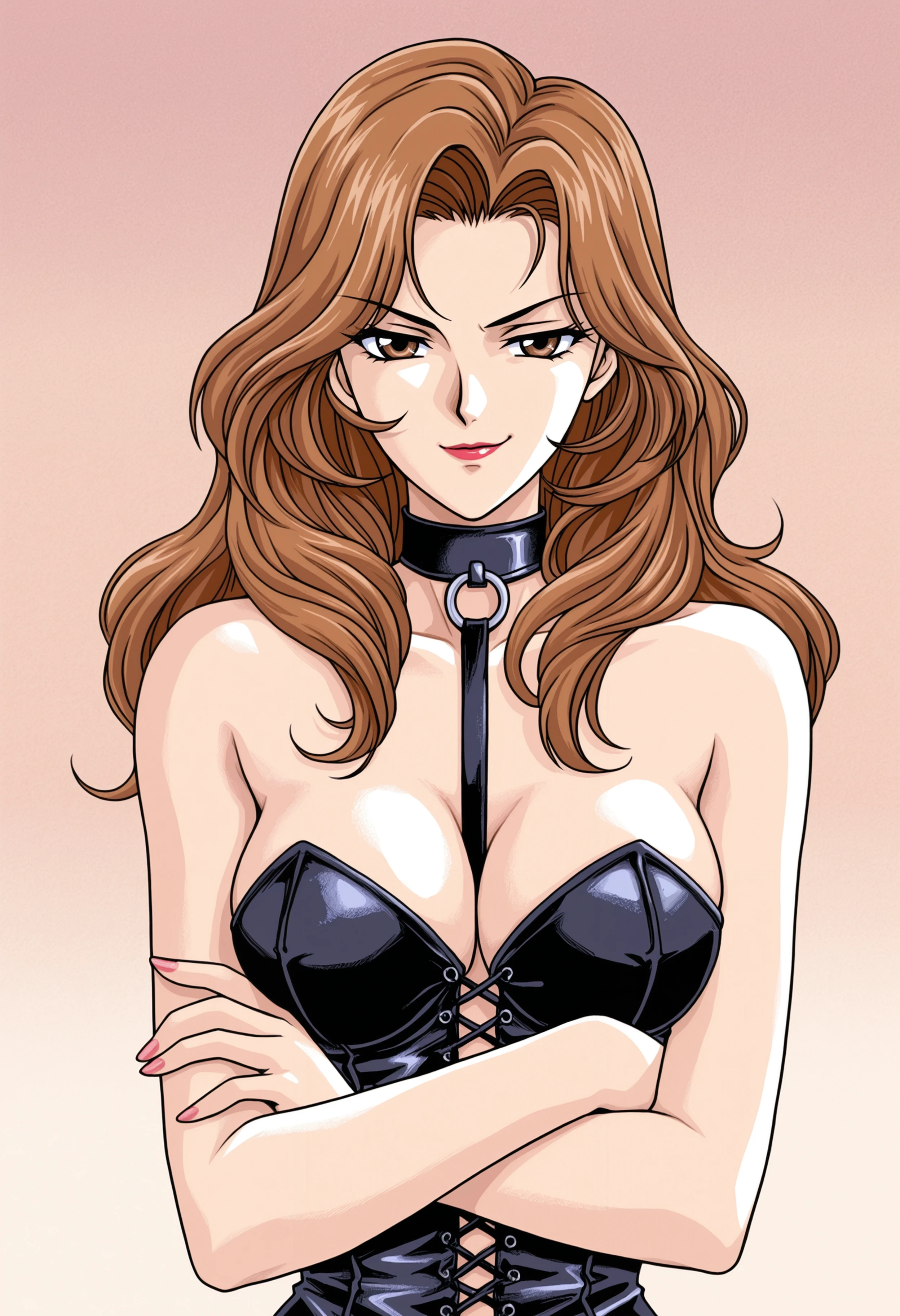 TetraKan_Mirei, brown hair, long hair, lipstick, dominatrix,