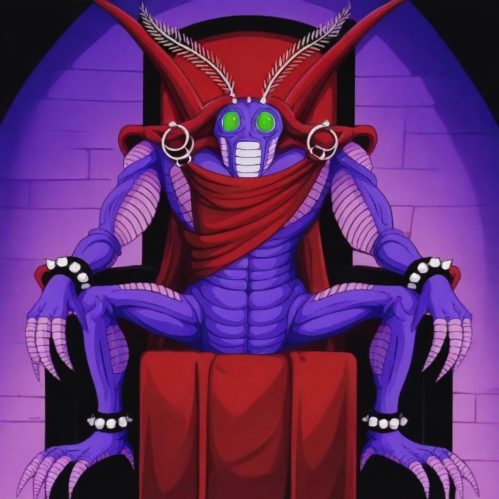 extra tags are - king moai,insect wings,horns,cloak,monster,digimon (creature),jewelry,