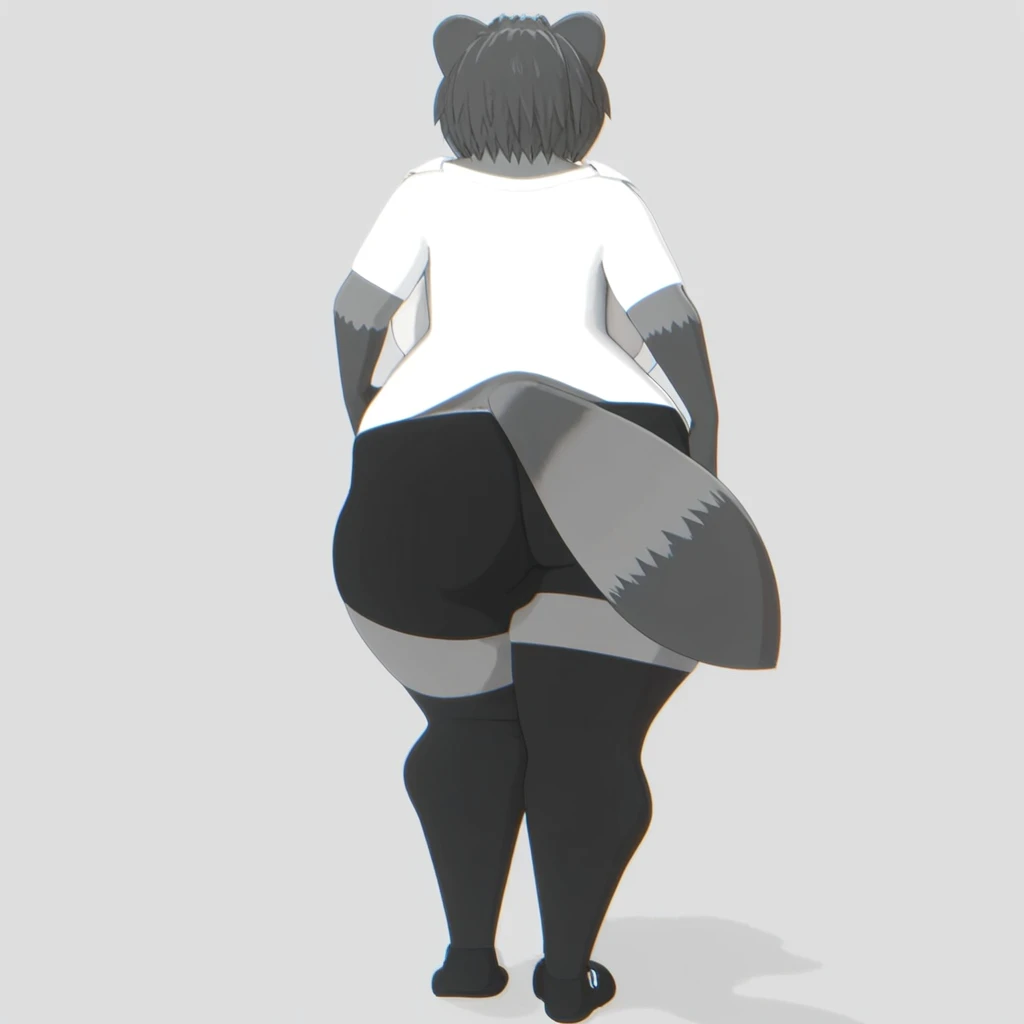 Maya, raccoon, anthro, chubby, thick thighs, racoon tail, racoon ears, glasses,