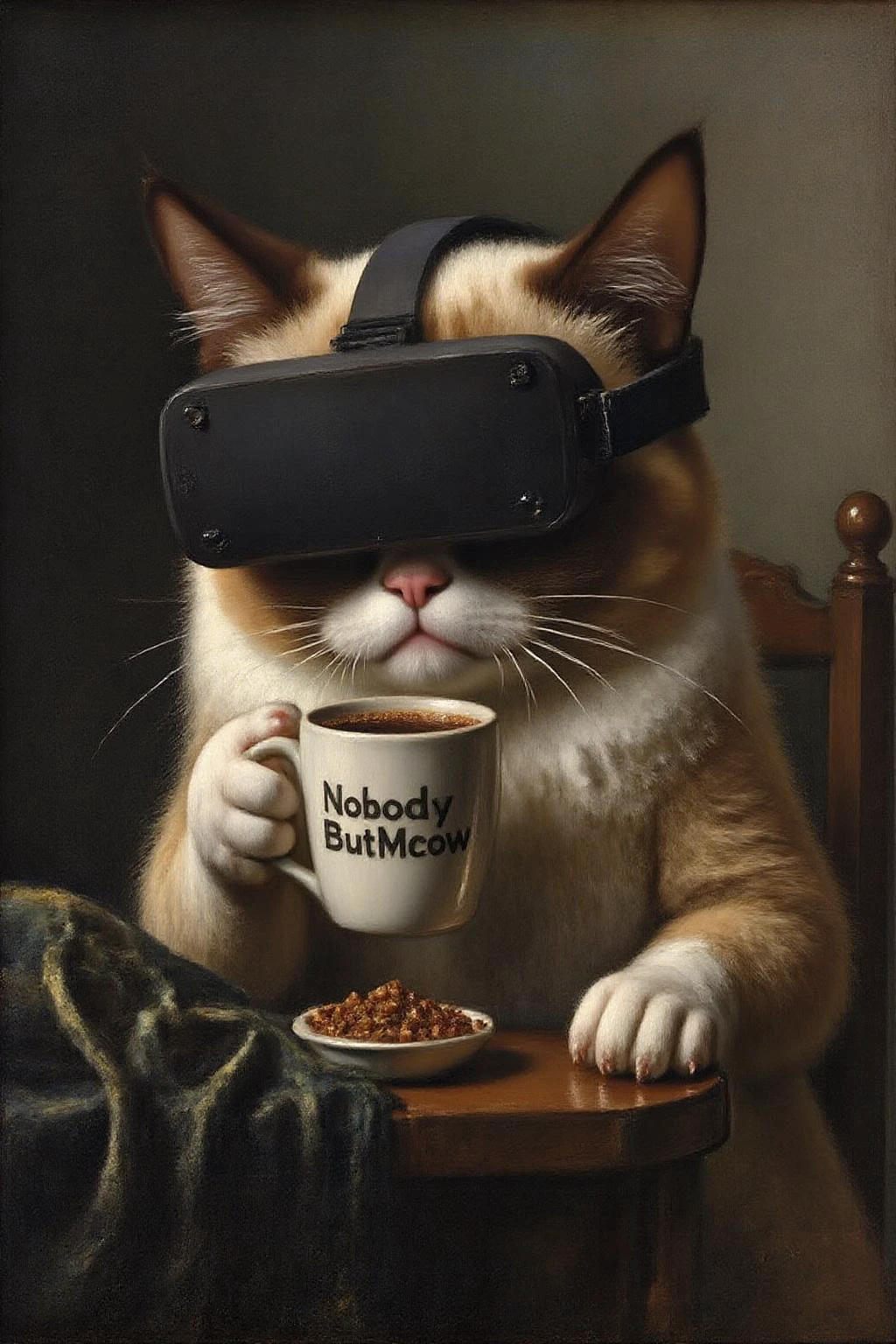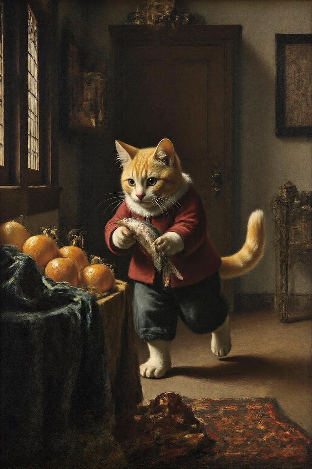 Turn your image into a timeless work of art, with a soft and subdued texture, along with a sense of serene and elegant domesticity (all the action seems to take place in the same room with that window😹).
