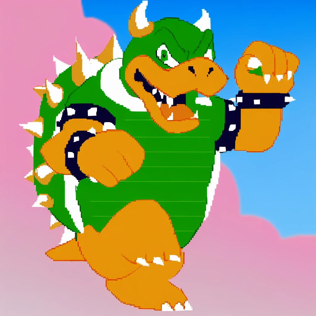 "B_SMW, Bowser, 2D, pixel art, 16bit."