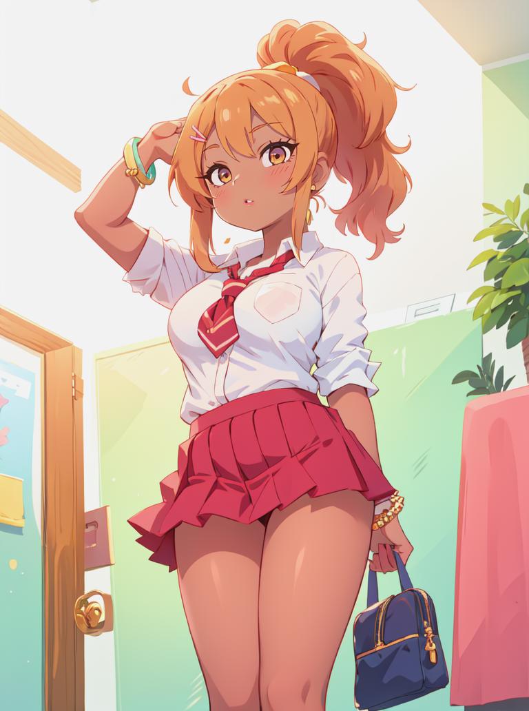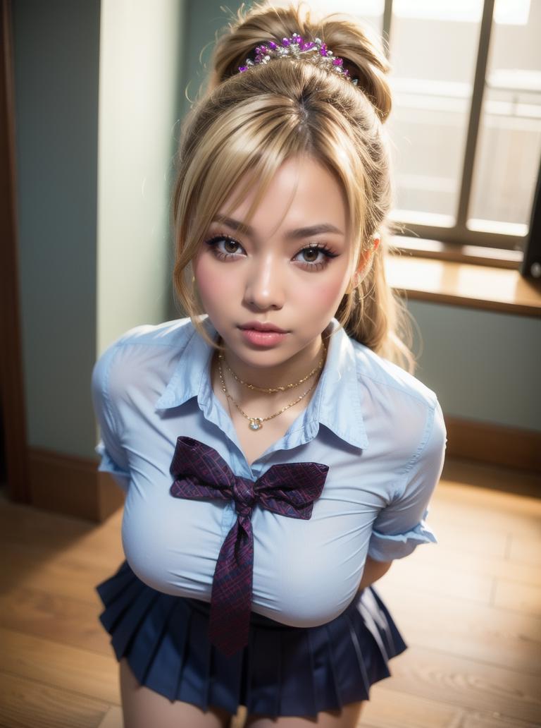 This LoRA will accentuate certain elements associated with Gyaru, like tanned skin, lighter hair colors, heavy makeup and accessories, skimpier clothing, suggestive poses and more cleavage.