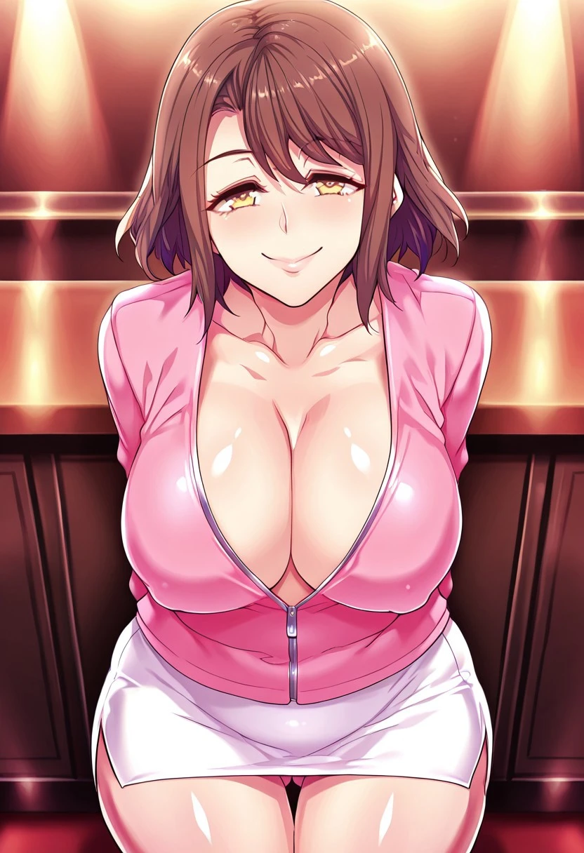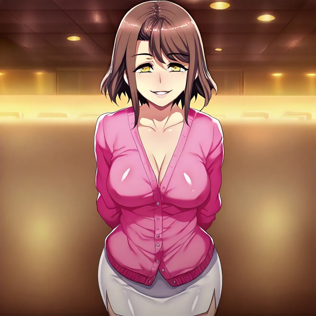 (( <lora:souma_souko:1> , souma_souko, piercing yellow eyes, clear eyes, bright pupils, beautiful eyes, beautiful brown hair, medium bob haircut, bangs, huge and shaggy breast, thin waist, wide hips, beautiful skin, natural beauty, extraordinary beautiful woman, attractive woman, super sexy woman, lustful body, sexy woman with seductive obscene body, sensual body, voluptuous body, sexy beauty, ))