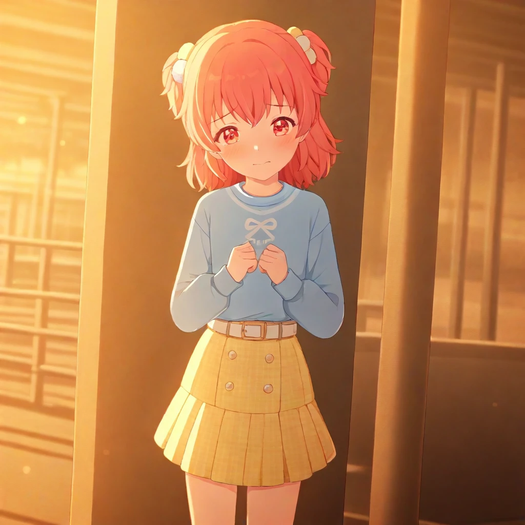 trigger words: airi-js, hair bobbles, pink hair, blueshirt, yellow skirt, white belt, white short socks, yellow canvas sneakers,