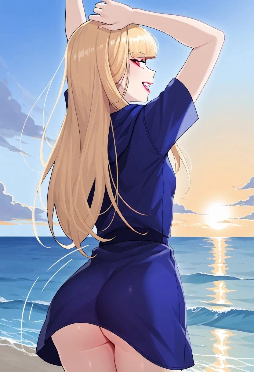 (( <lora:k1m_s6ng-a4:1> , k1m_s6ng-a4, beautiful red eyes, clear eyes, bright pupils, beautiful platinum blonde hair, beautiful long hair, blunt bangs, small breast, skindentation, thin waist, medium hips, beautiful skin, slim body, short woman, natural beauty, attractive woman, sexy beauty, ))