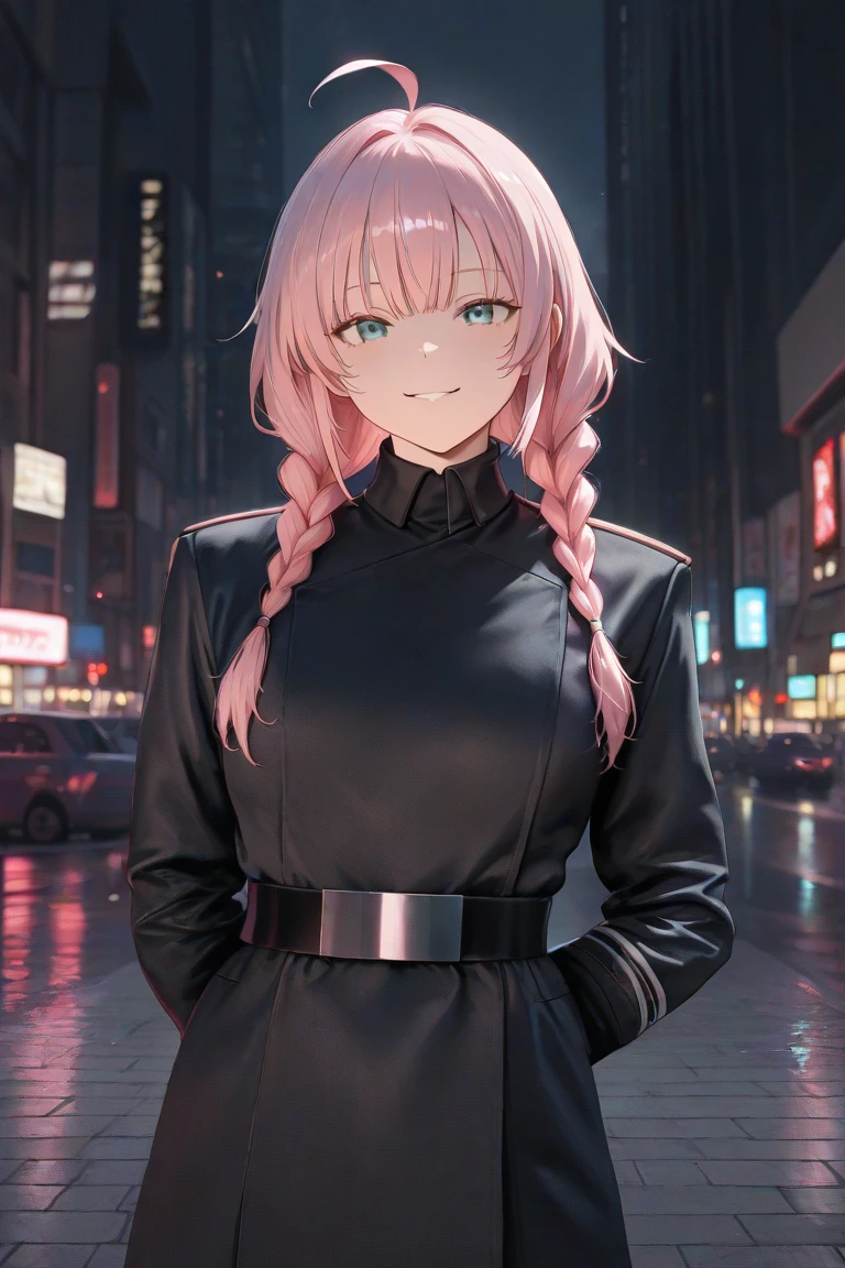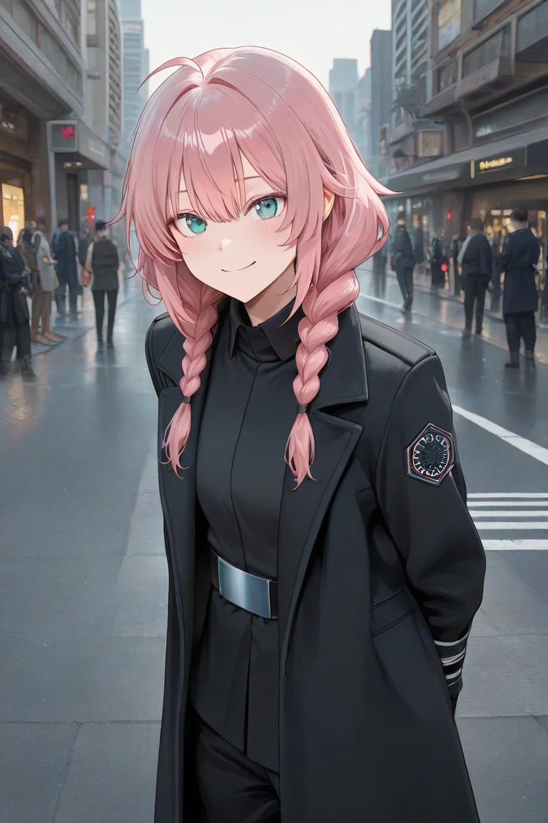 <First_Order_Officer-general>, uniform, black long jacket, belt, black trousers, long trench coat, black boots, Front view