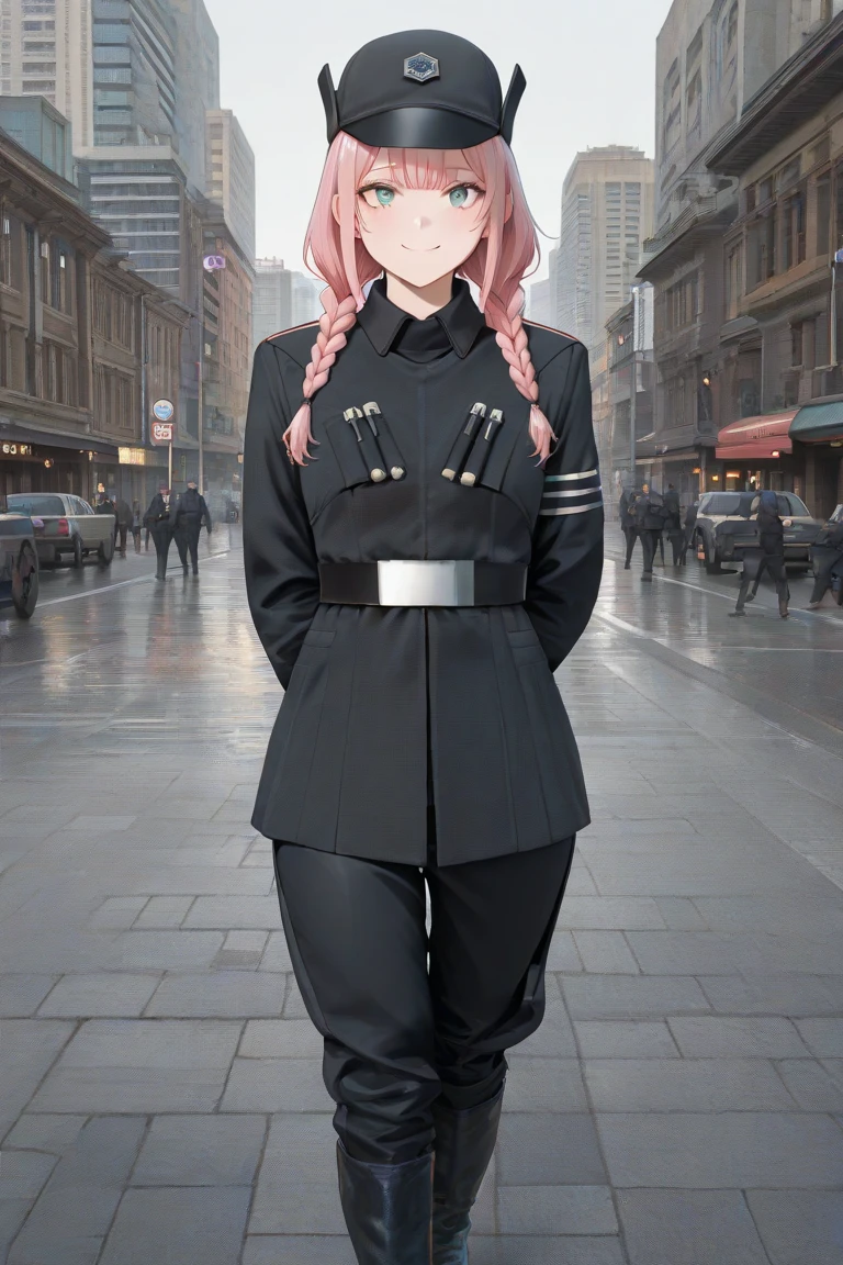 <First_Order_Officer-general>, uniform, black long jacket, belt, black trousers, cap, black boots.