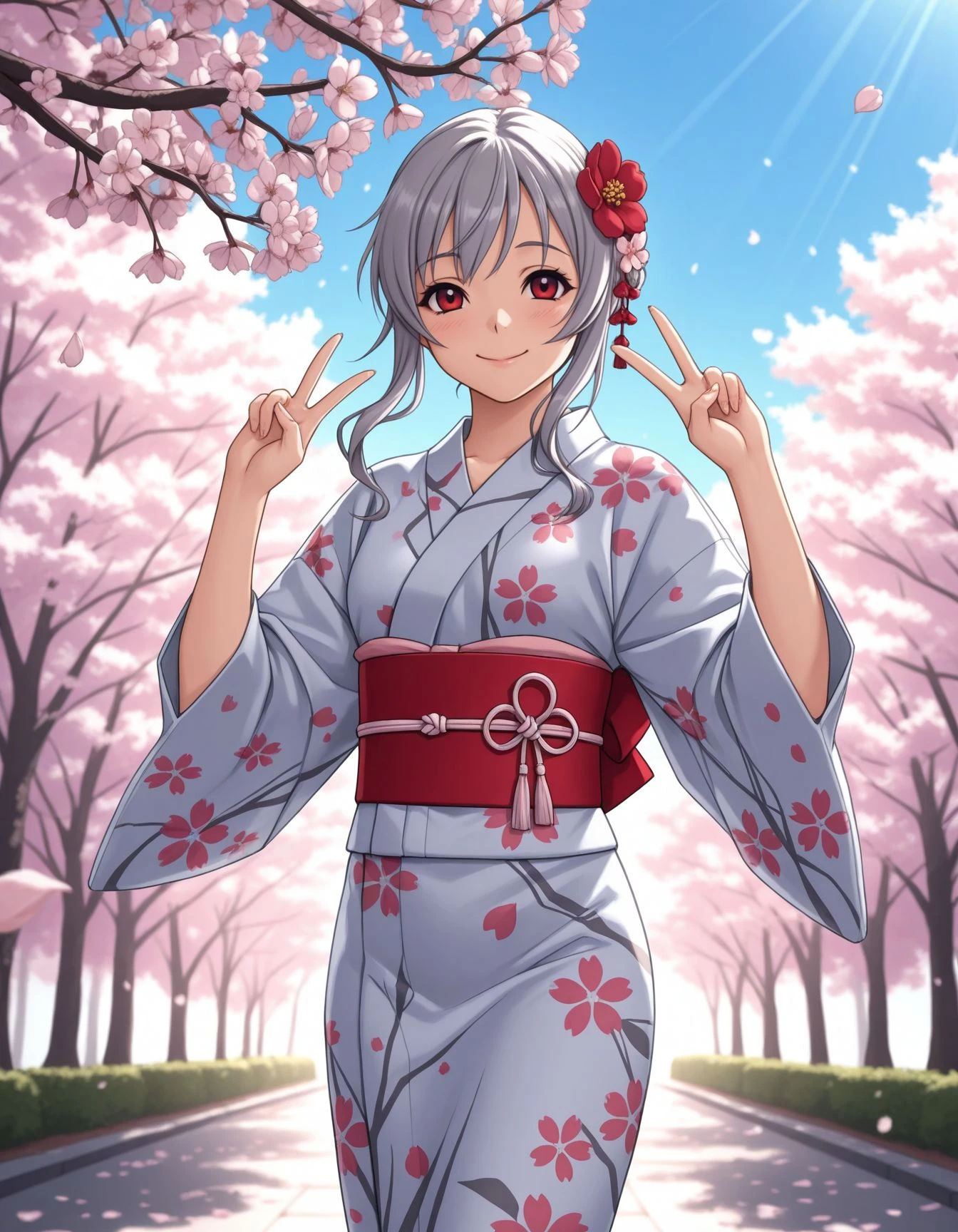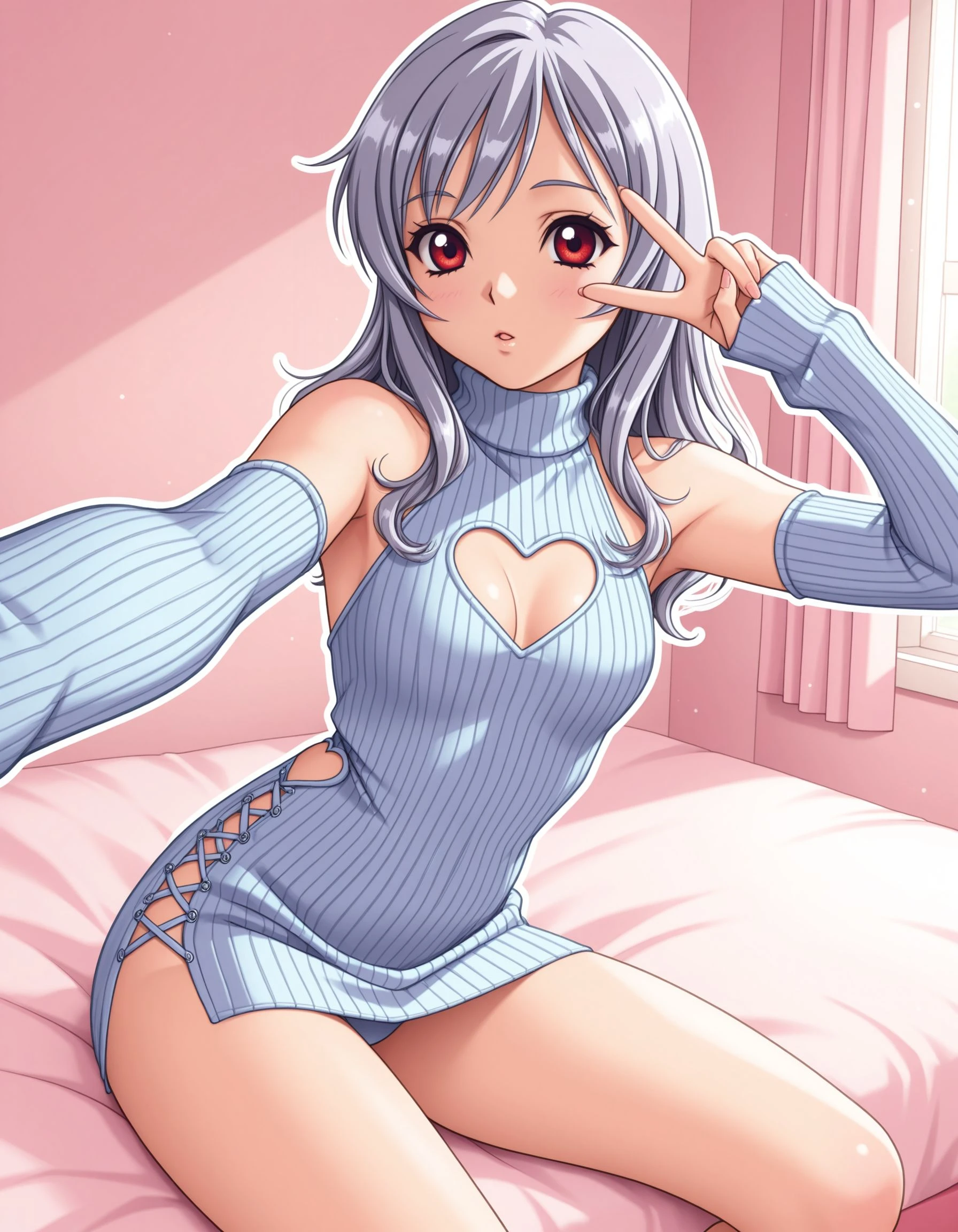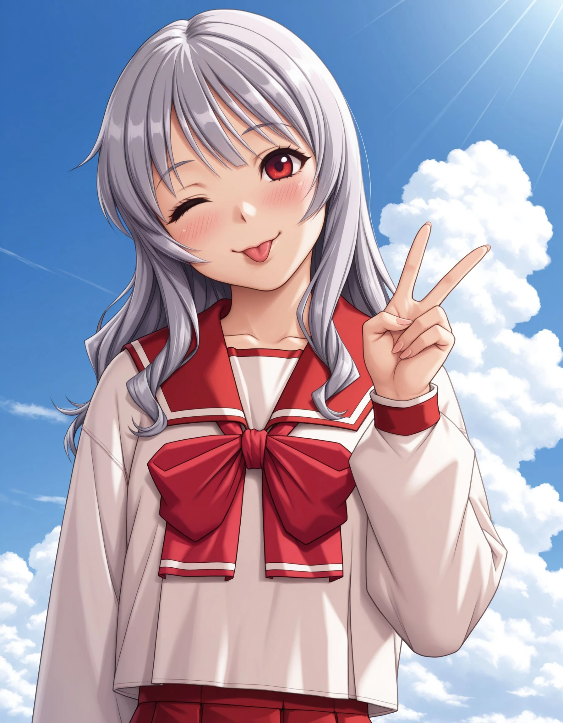 THK0t0n3, Grey hair, red eyes