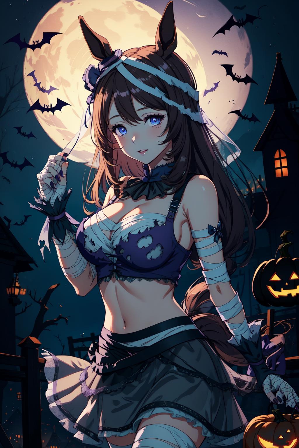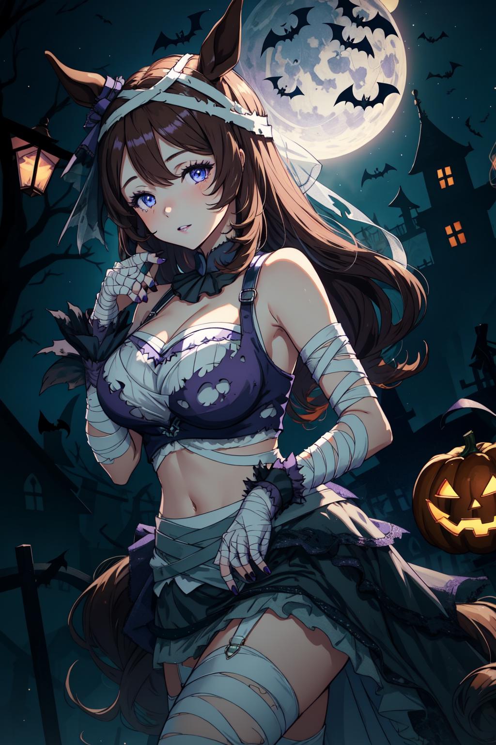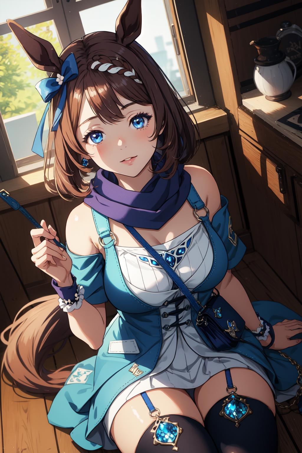 sup3rcr33k, blue dress, horse girl, horse tail, blue hair bow, blue scarf, blue wrist cuffs, blue thighhighs, shoulder bag