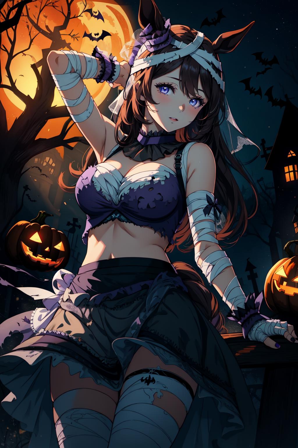 sup3rcr33kh, blue eyes, horse tail, horse girl, skirt, bandage, bandage arm, torn clothes, purple nails